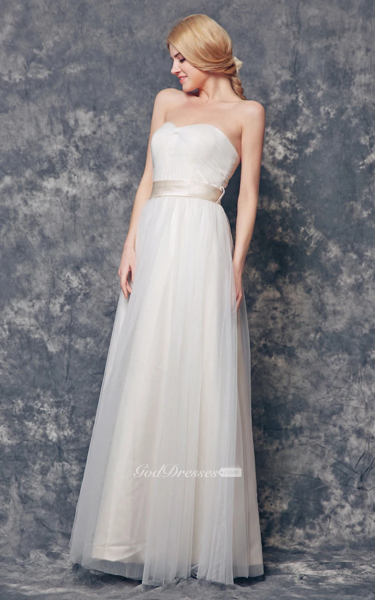 Go for a traditional long dress theme for all your bridesmaids with the help of this stunning floor length A-line Tulle, strapless, backless and with an alluring sweetheart neckline! Zips up in the back to give you the perfect figure and support! This dress will surely set all your most important girls apart from the rest of the crowd.