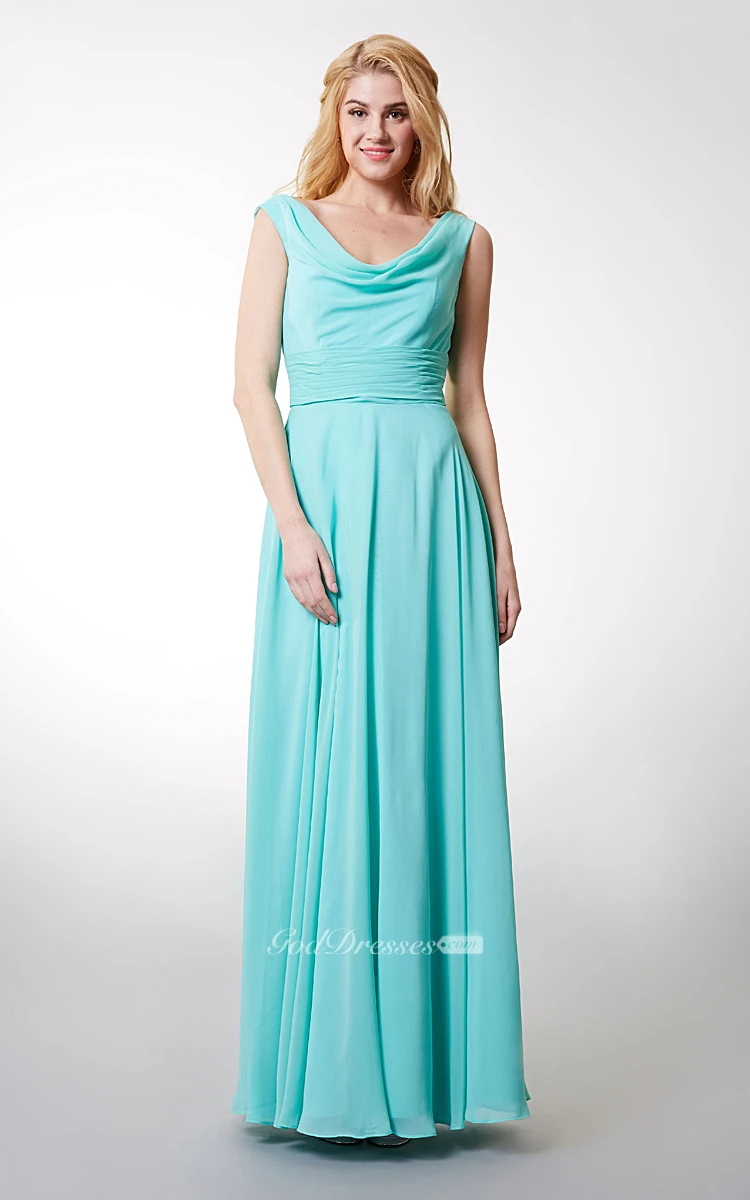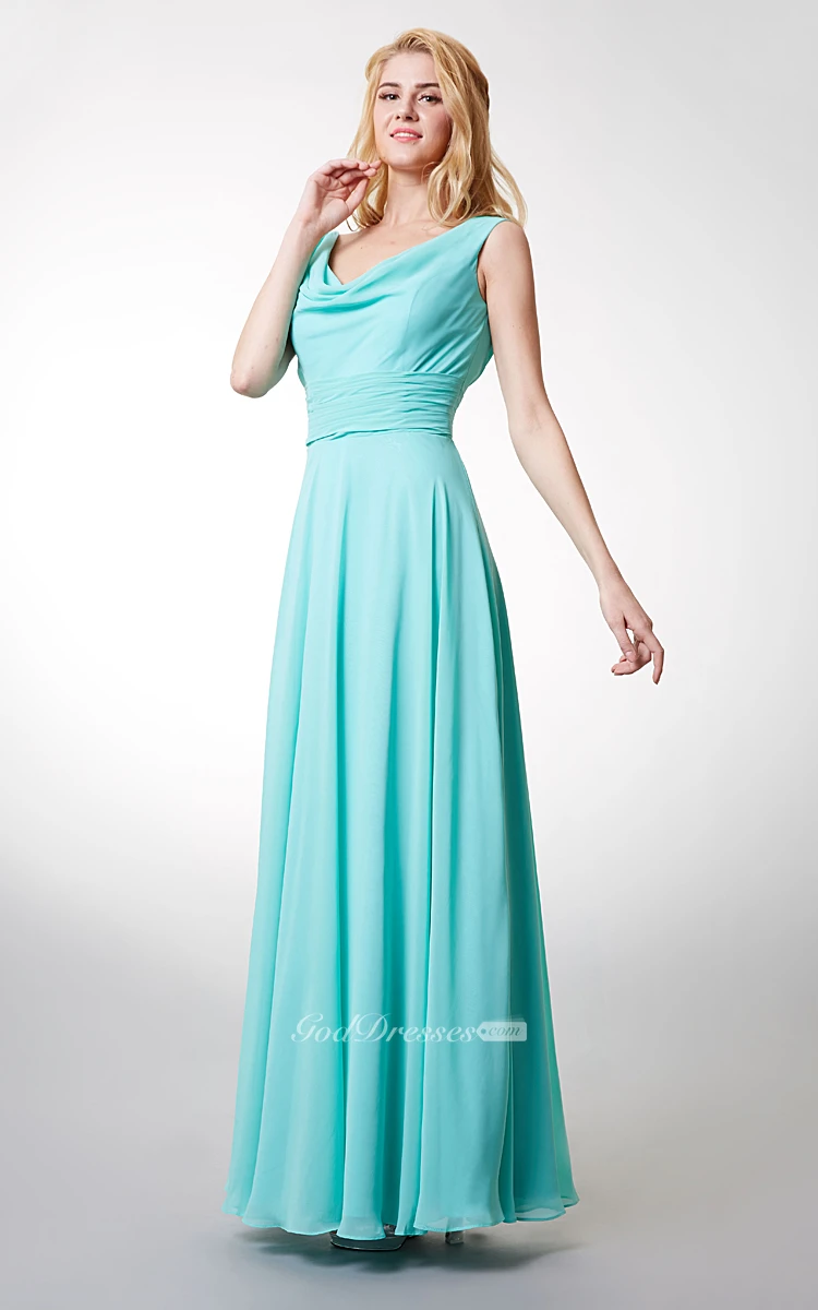 Charming Cowl Neck Sleeveless Long Chiffon Dress With V-neck