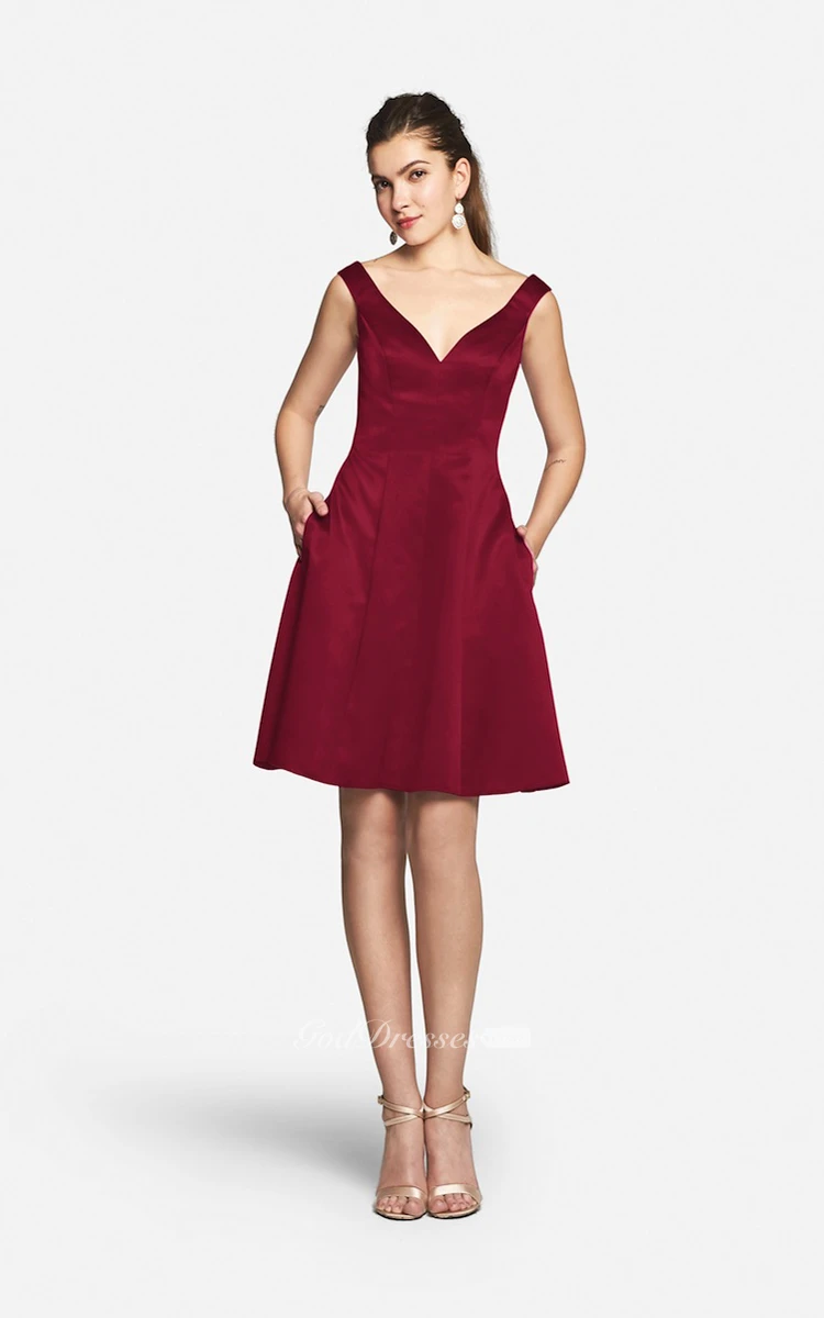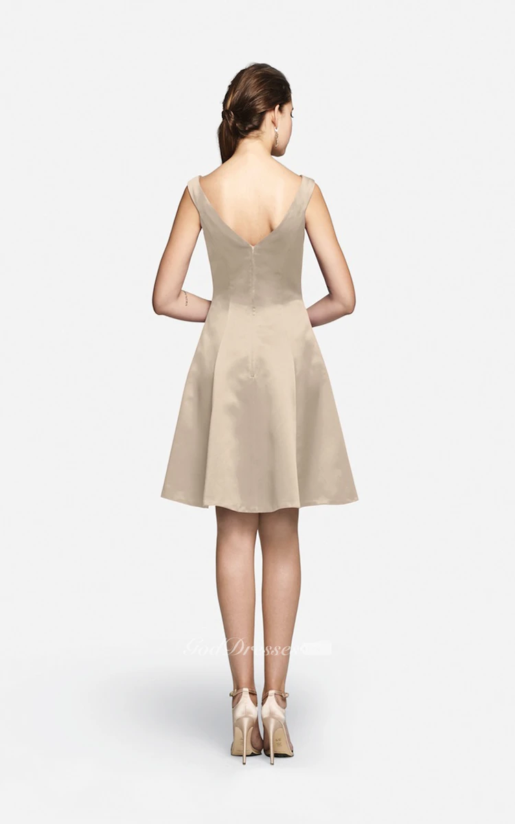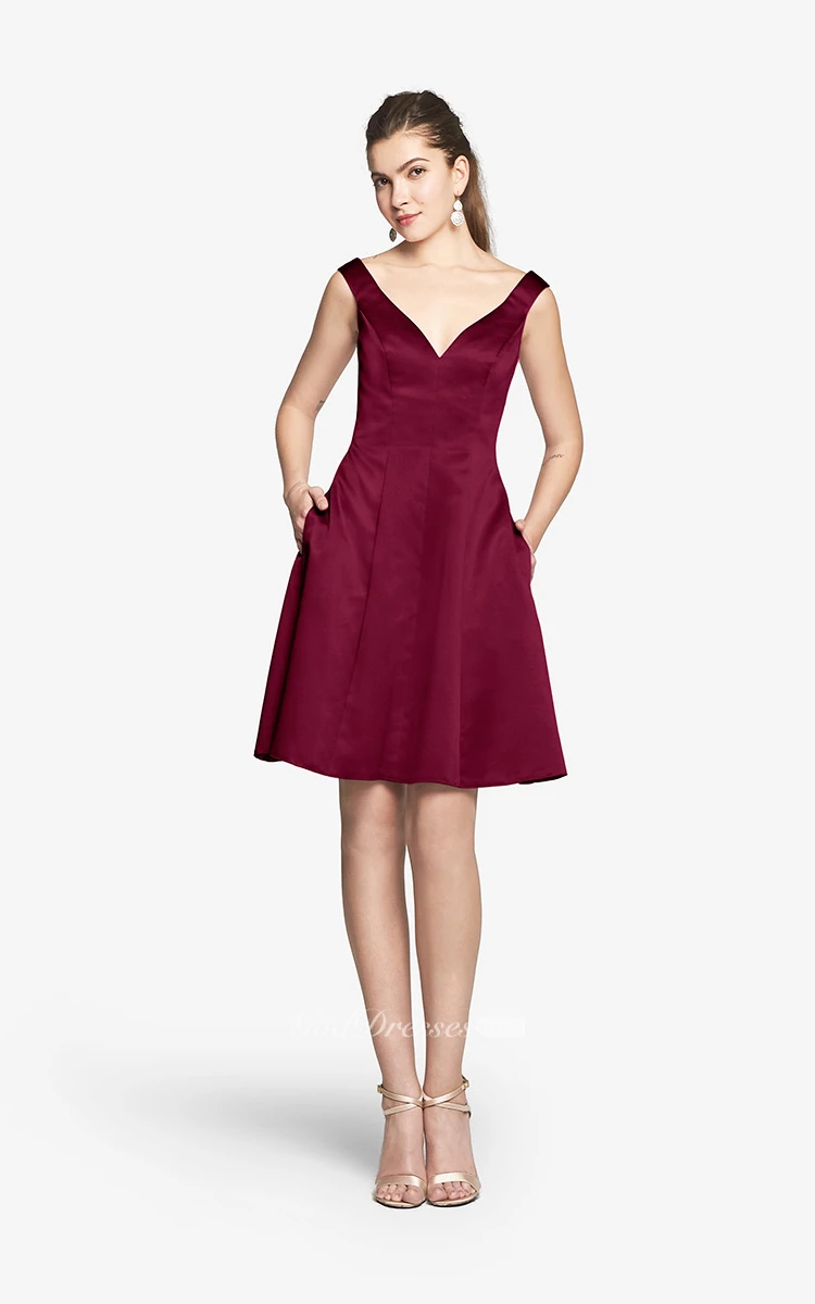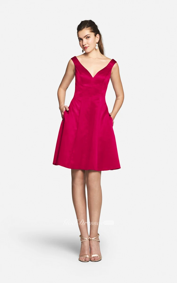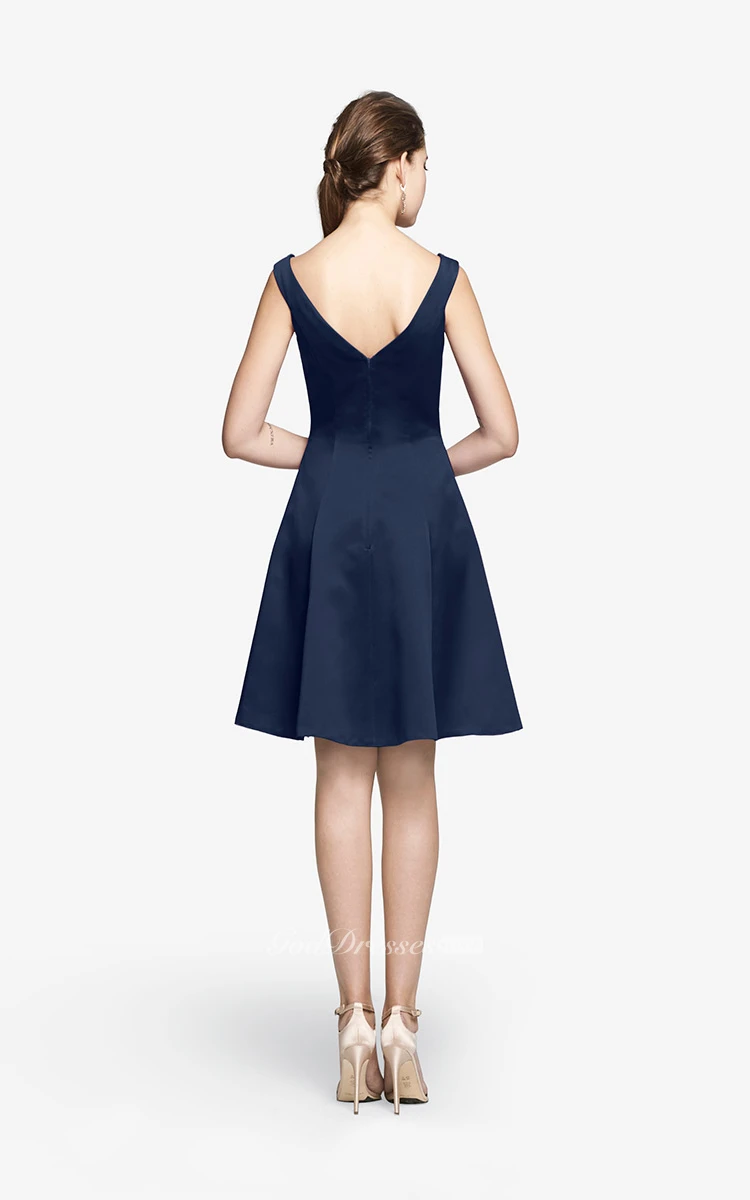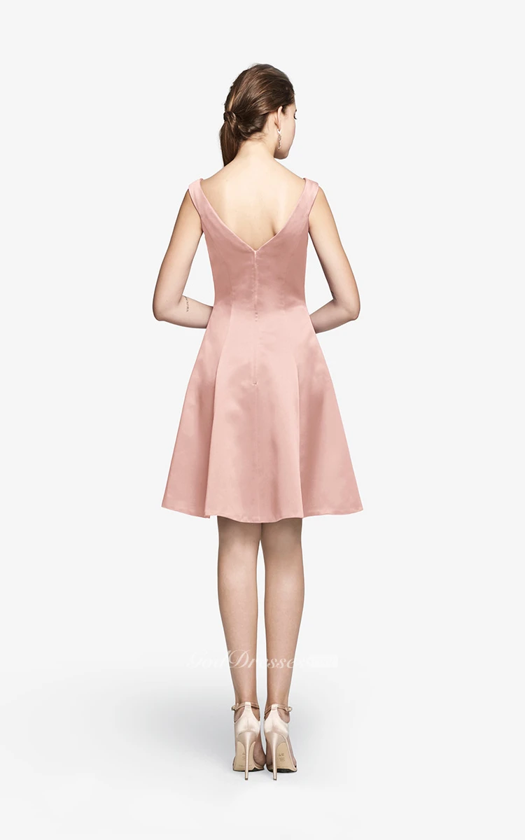 Charming Mini V Back Sleeveless A-Line Satin Dress With V-neck and Side Pockets