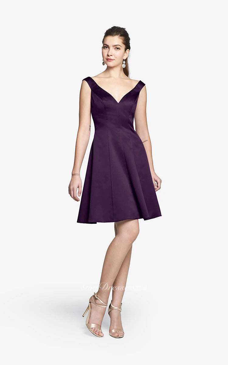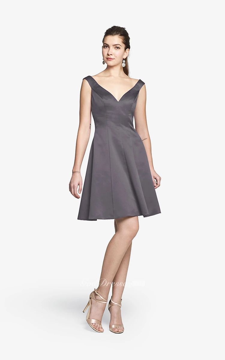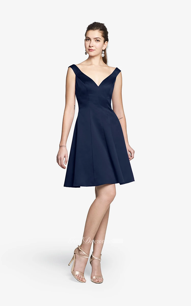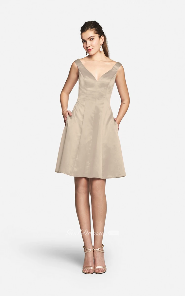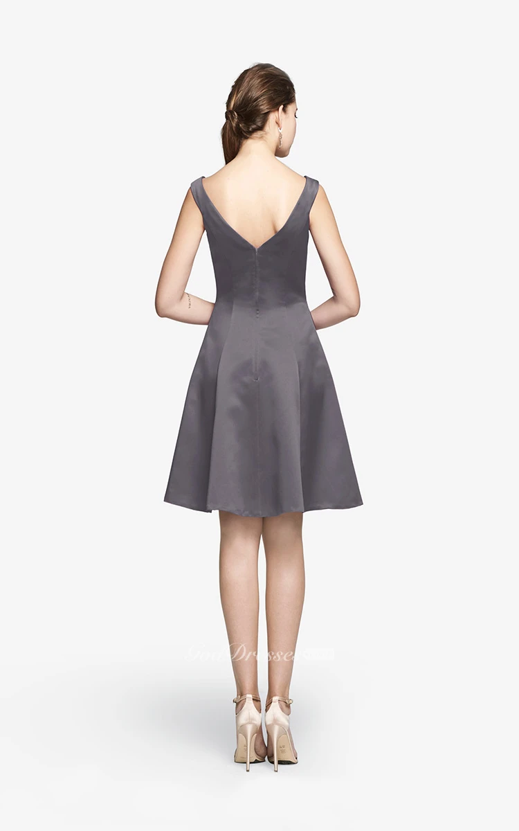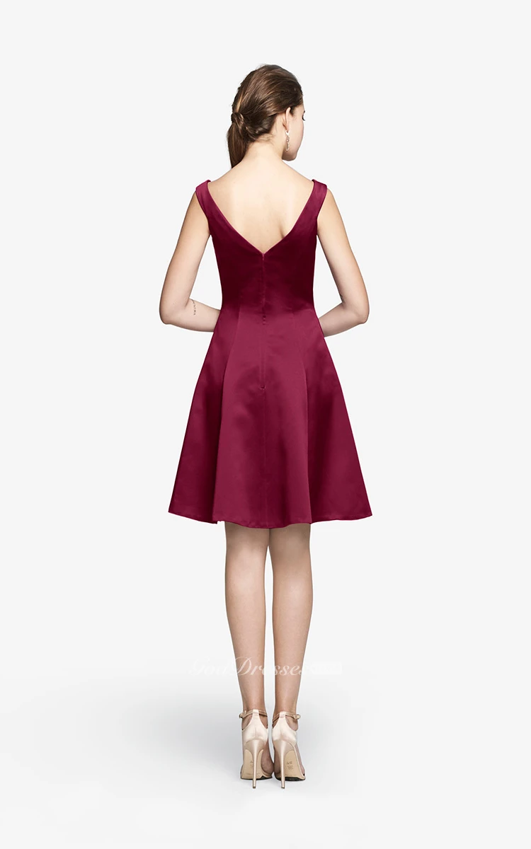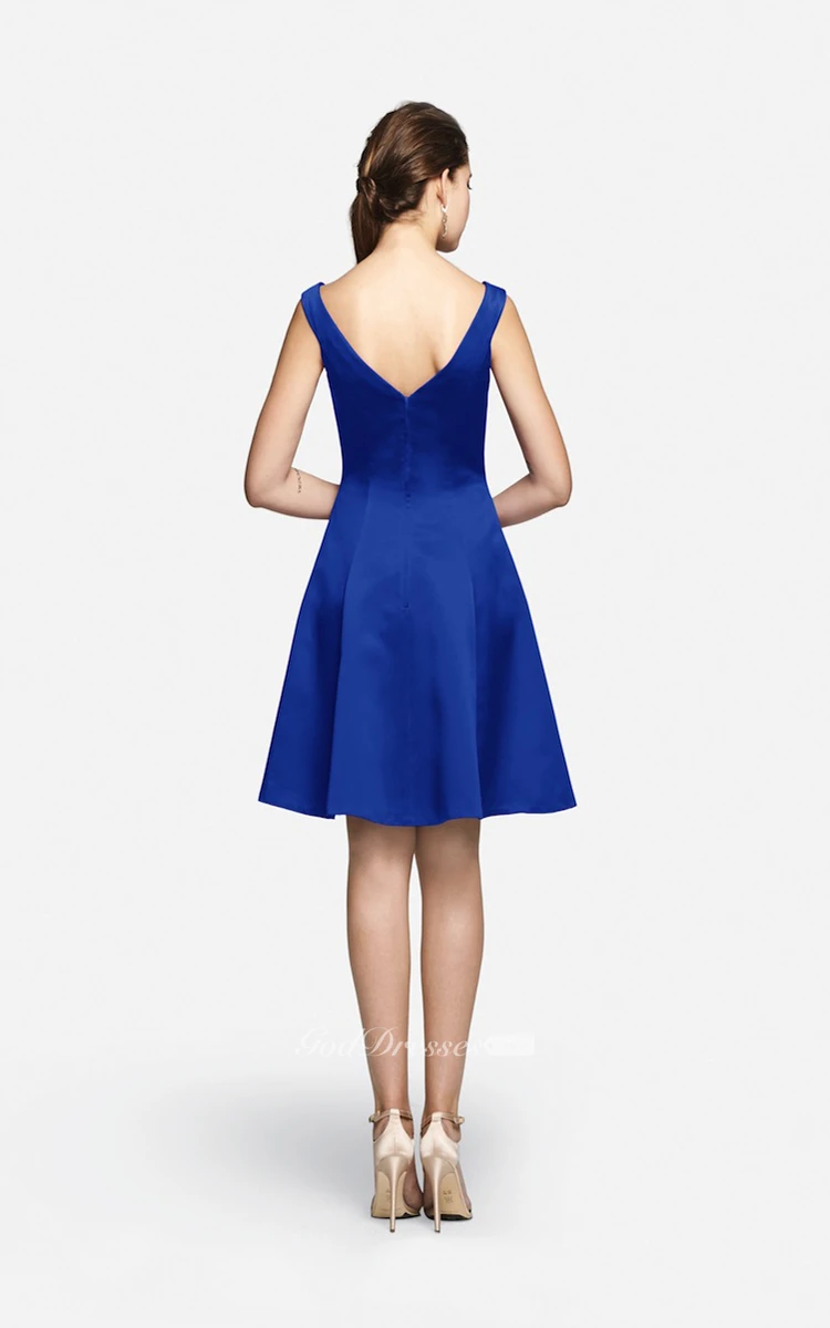 Charming Mini V Back Sleeveless A-Line Satin Dress With V-neck and Side Pockets