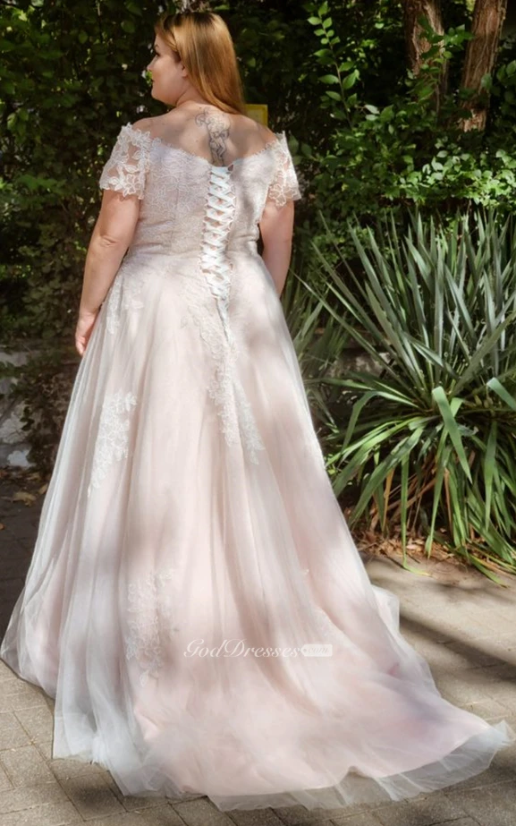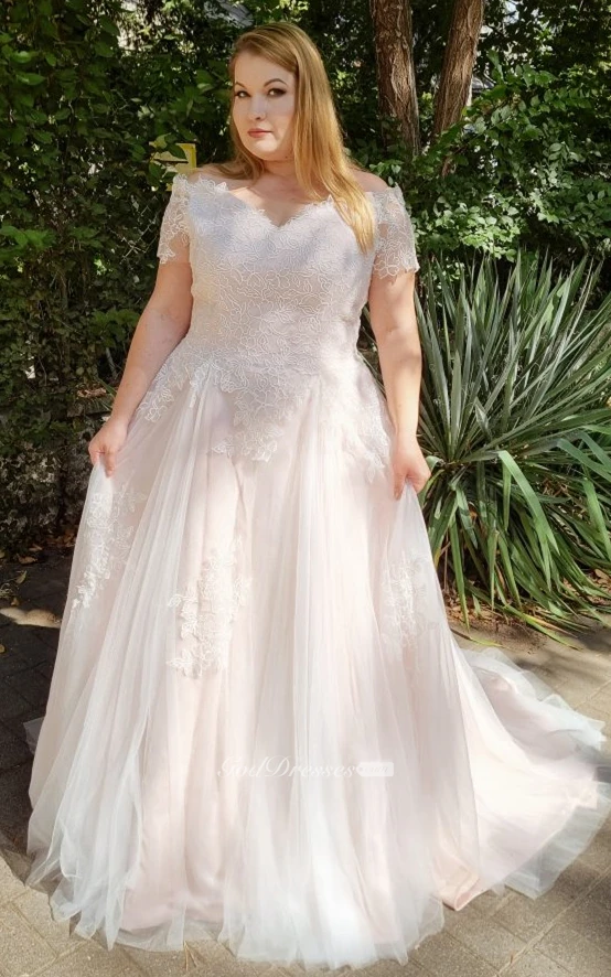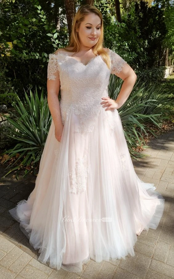 Charming Plus Size A Line Tulle Wedding Dress with Appliques