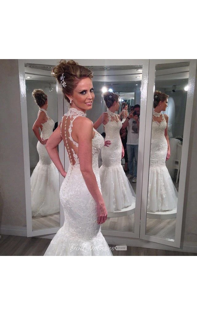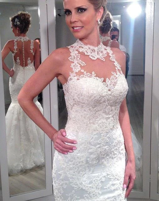 Charming Sleeveless Lace Wedding Dresses Mermaid Tulle Princess