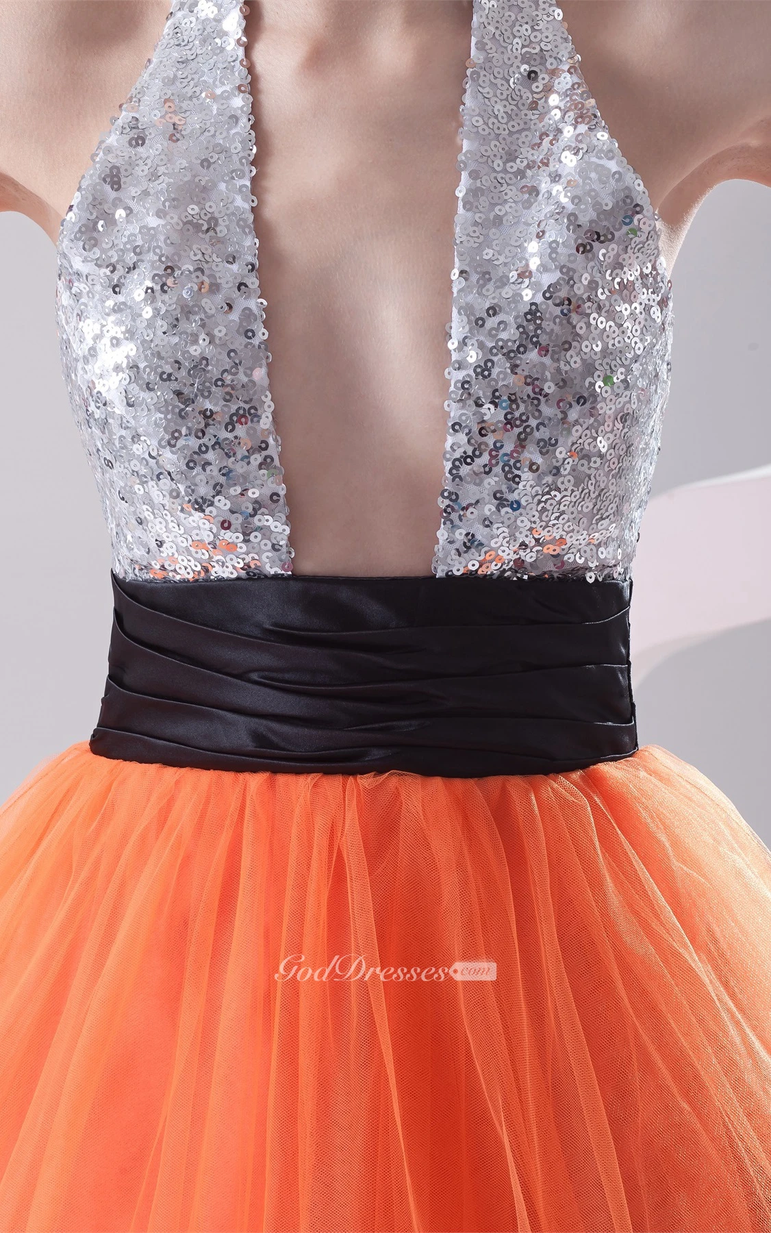 Chic A-Line Sleeveless Ball-Gown With Sequined Top