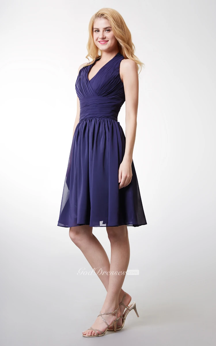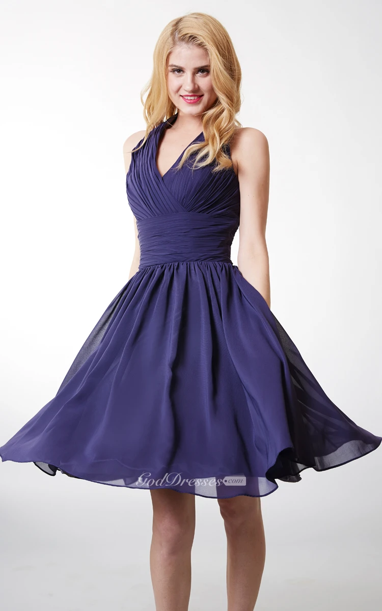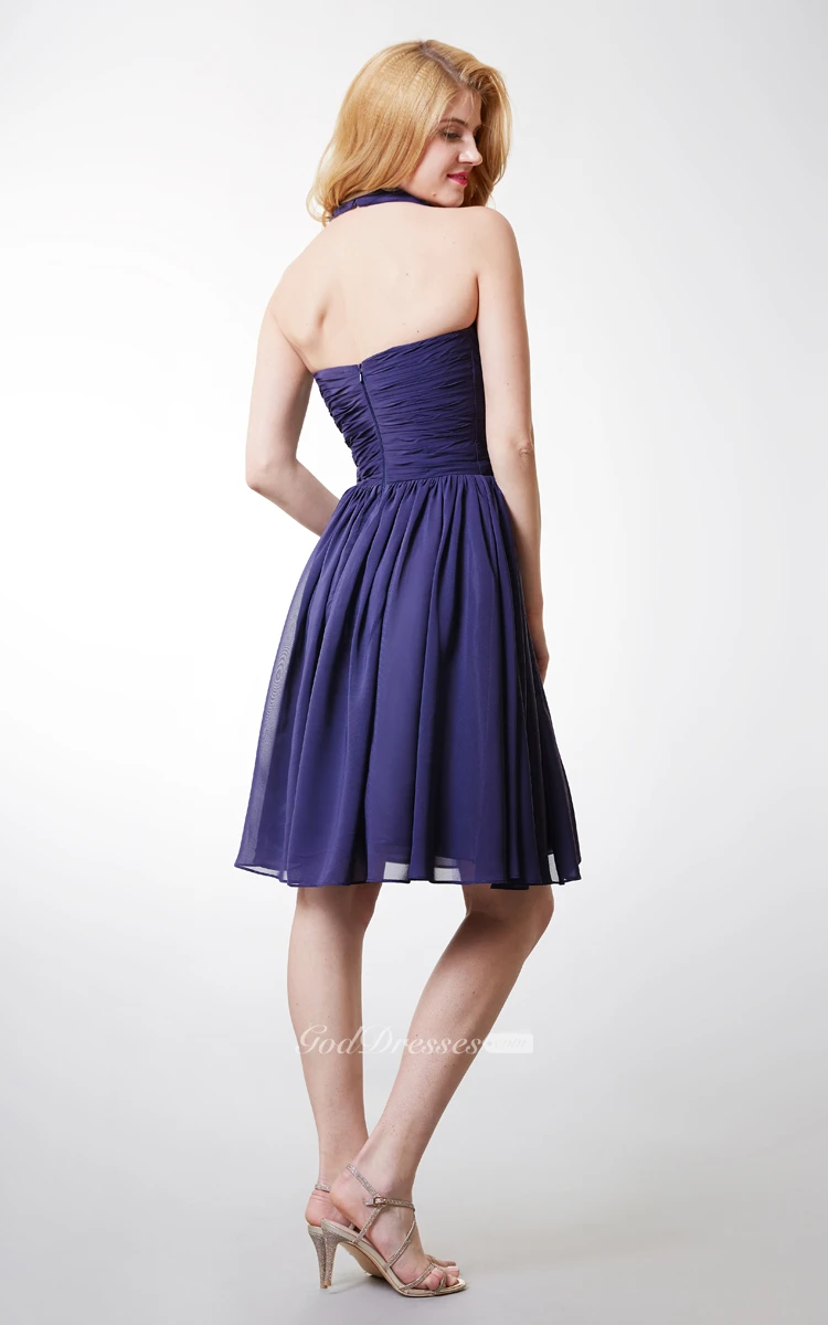 Chic Halter Style Bodice-pleated Layered A-line Chiffon Dress