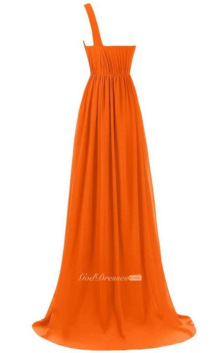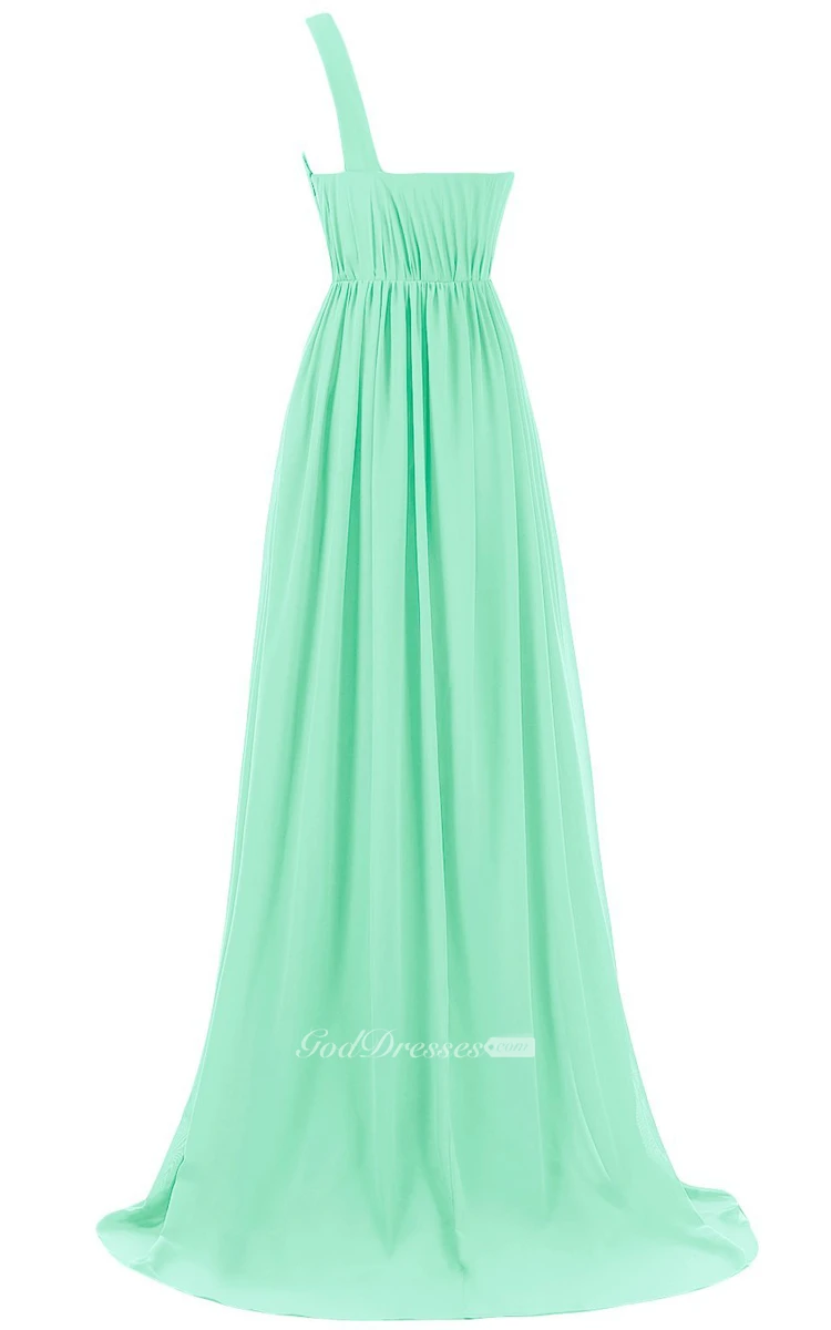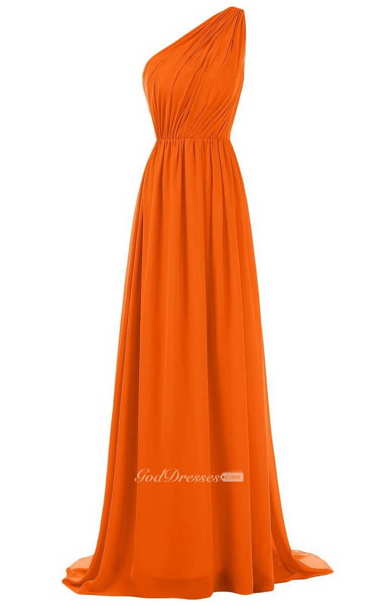 Chic One-shoulder Pleated Chiffon A-line Gown With Train