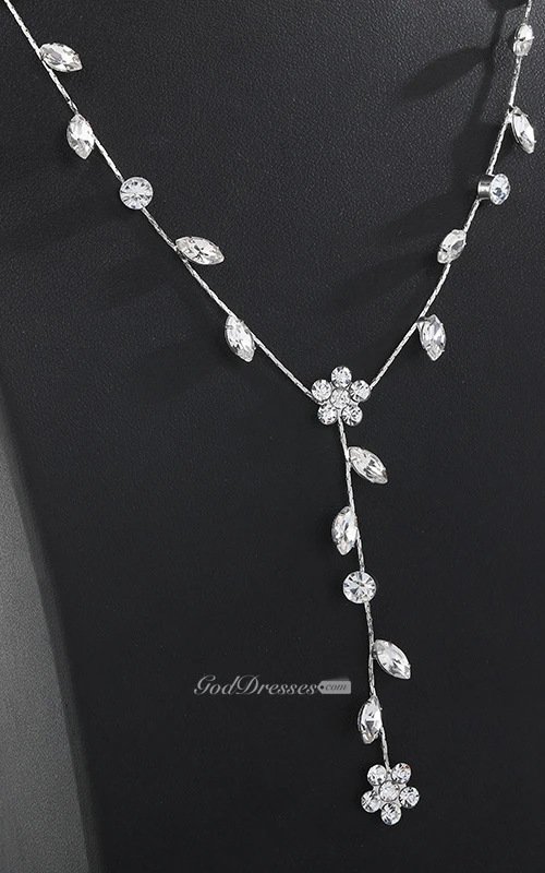 Chic Rhinestone Leaves and Flowers Design Necklace and Earrings Bridal Jewelry Set