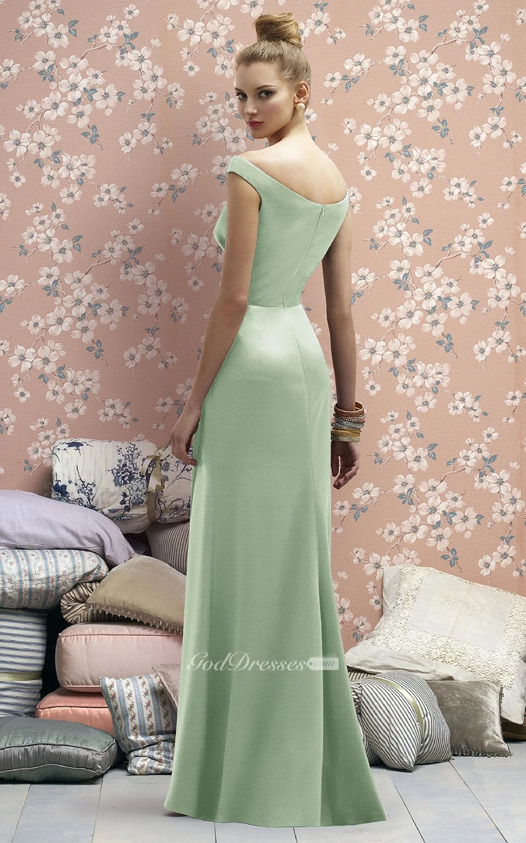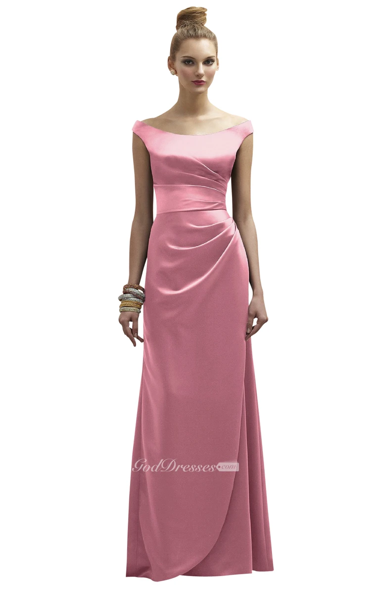 Chic Satin Cap-Sleeved Bateau Sheath