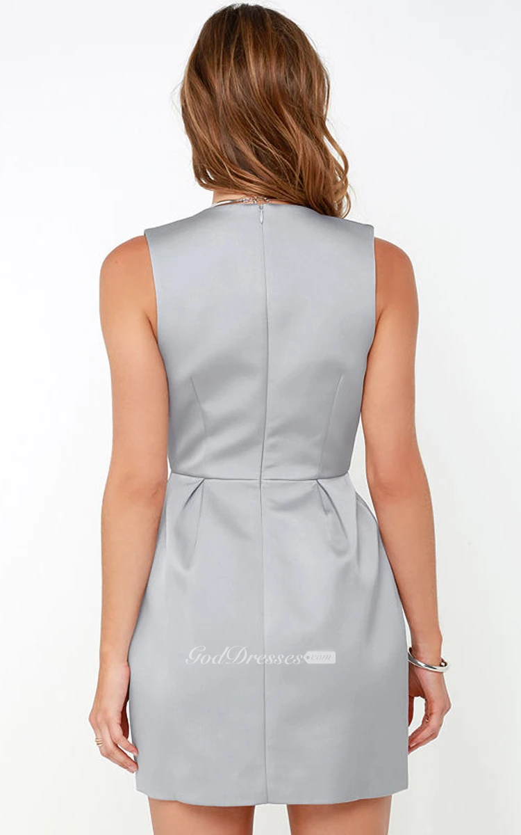 Chic Satin Sleeveless Dress With Notched Neckline