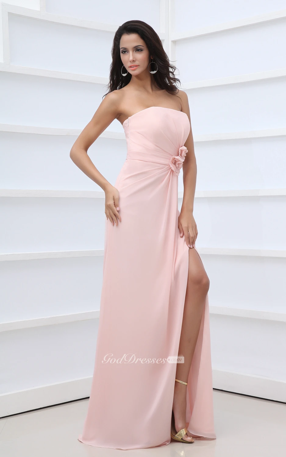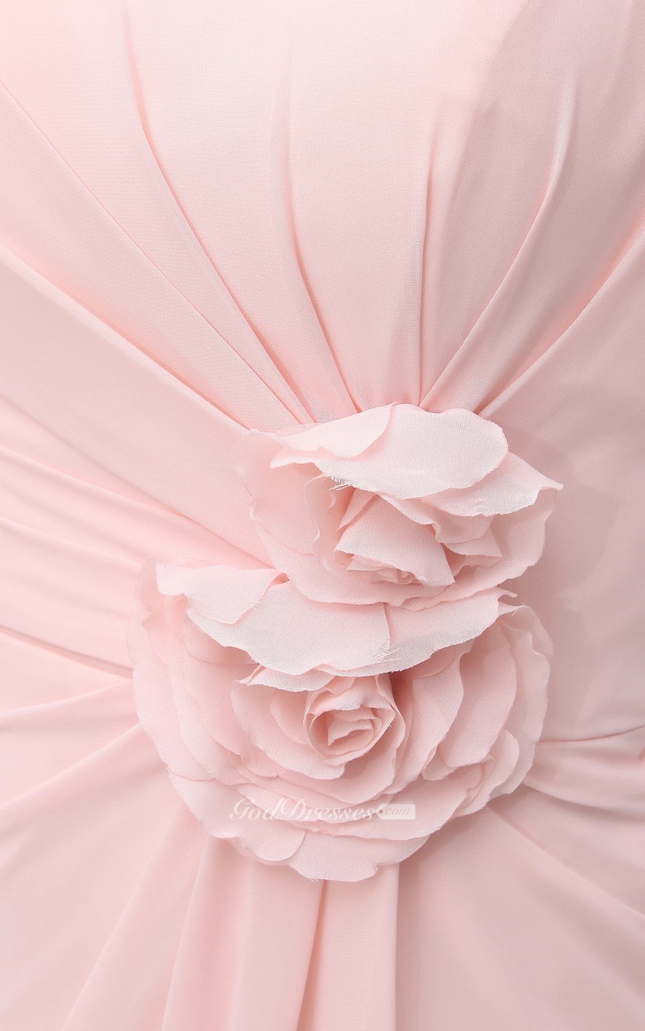 Chic Scalloped Neckline Chiffon Gown With Flower and Side Split