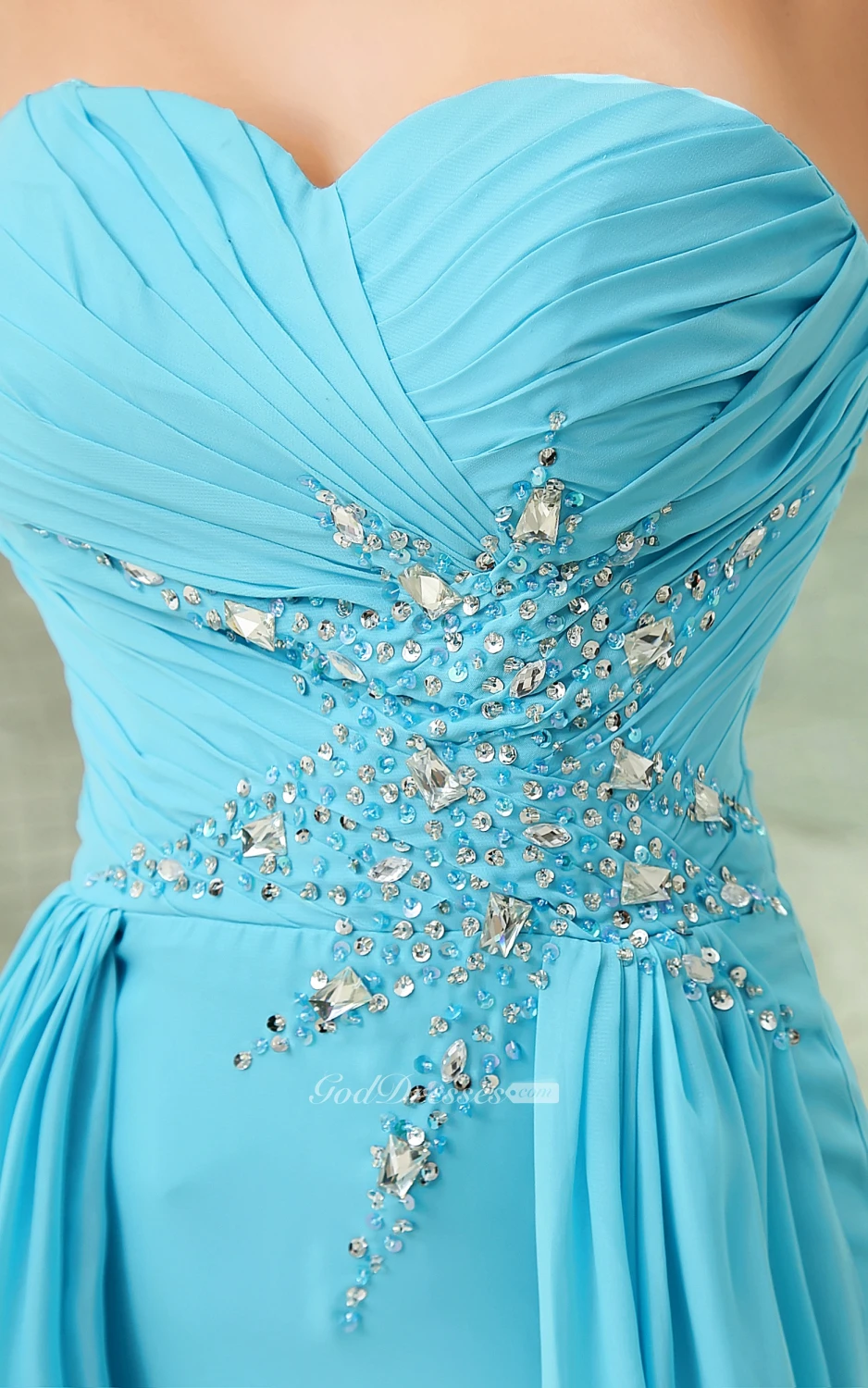 Chic Sweetheart Crystal Detailed Chiffon Gown With Side Split