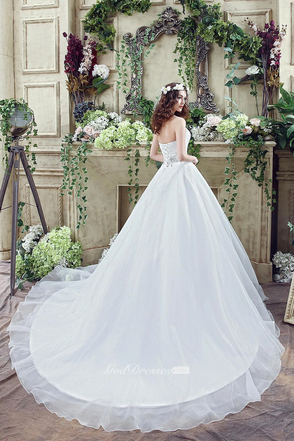 Chic White Sweetheart Beadings Wedding Dress Court Train Lace-up