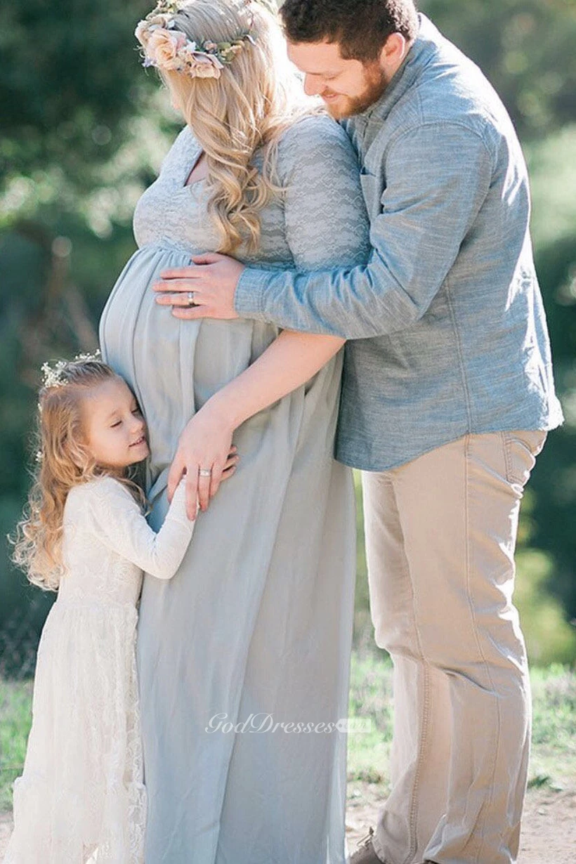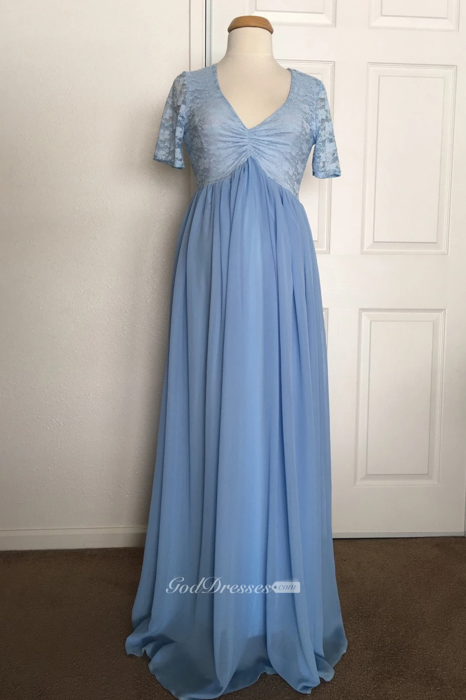 Chiffon A-line Illusion Short Sleeve V-neck Maternity Dress