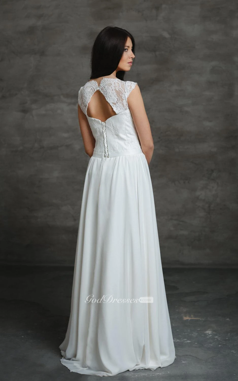 Chiffon A-Line Sleeveless Dress With Lace Bodice and Keyhole Back