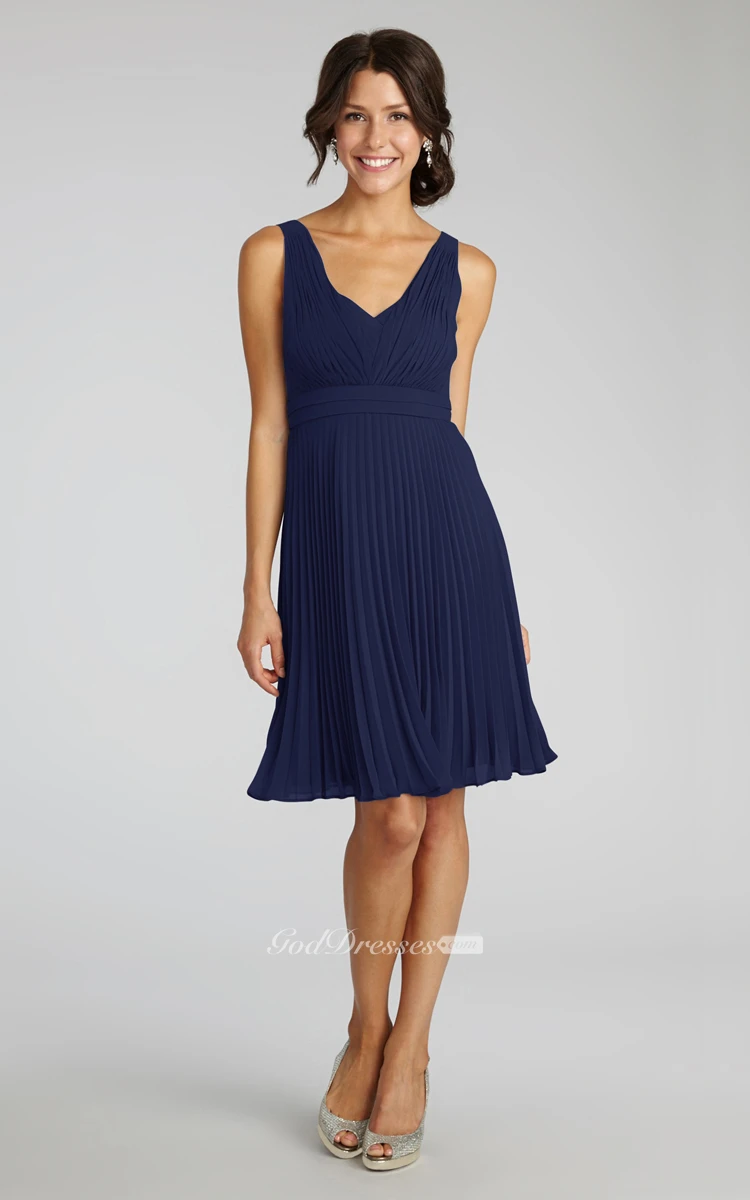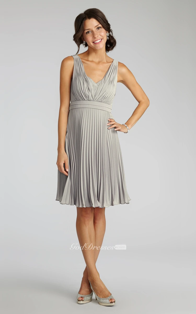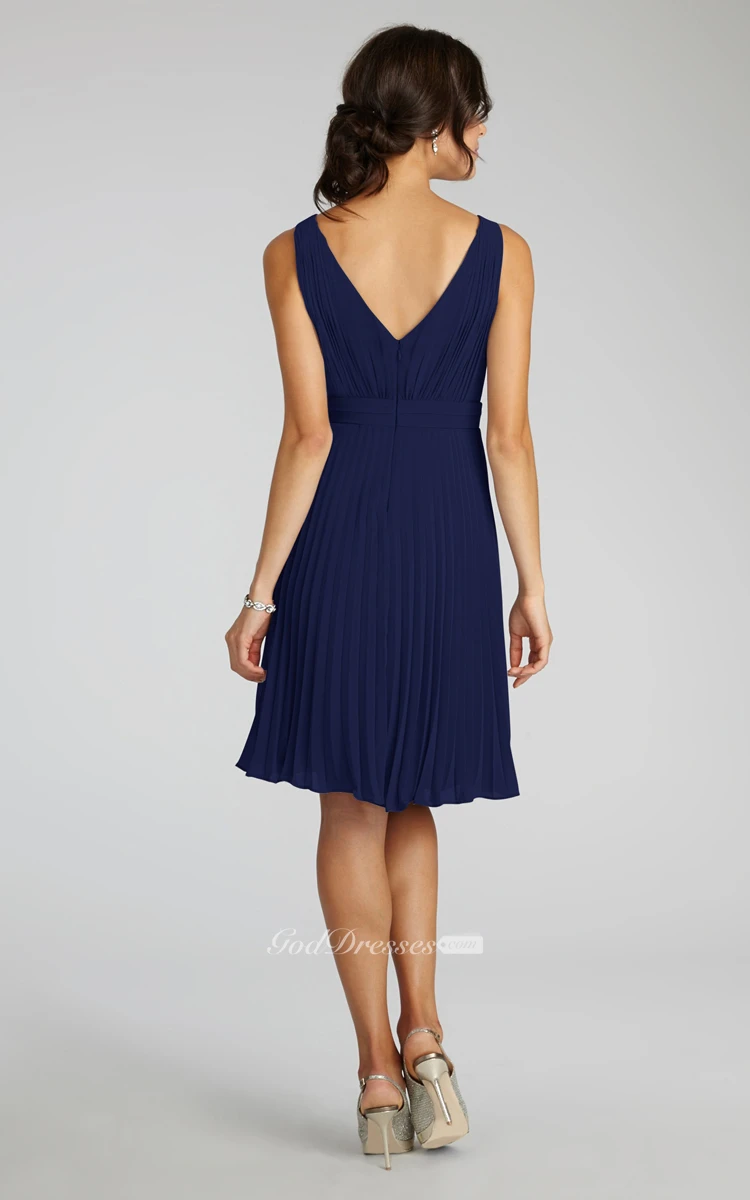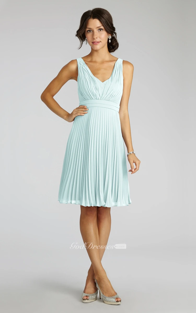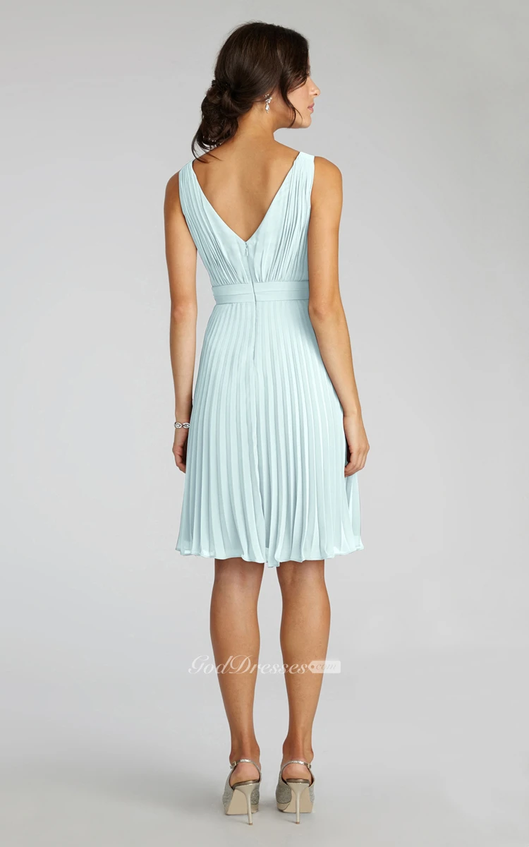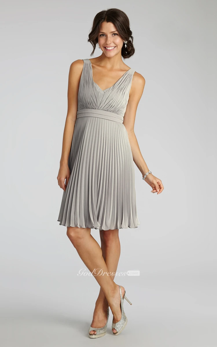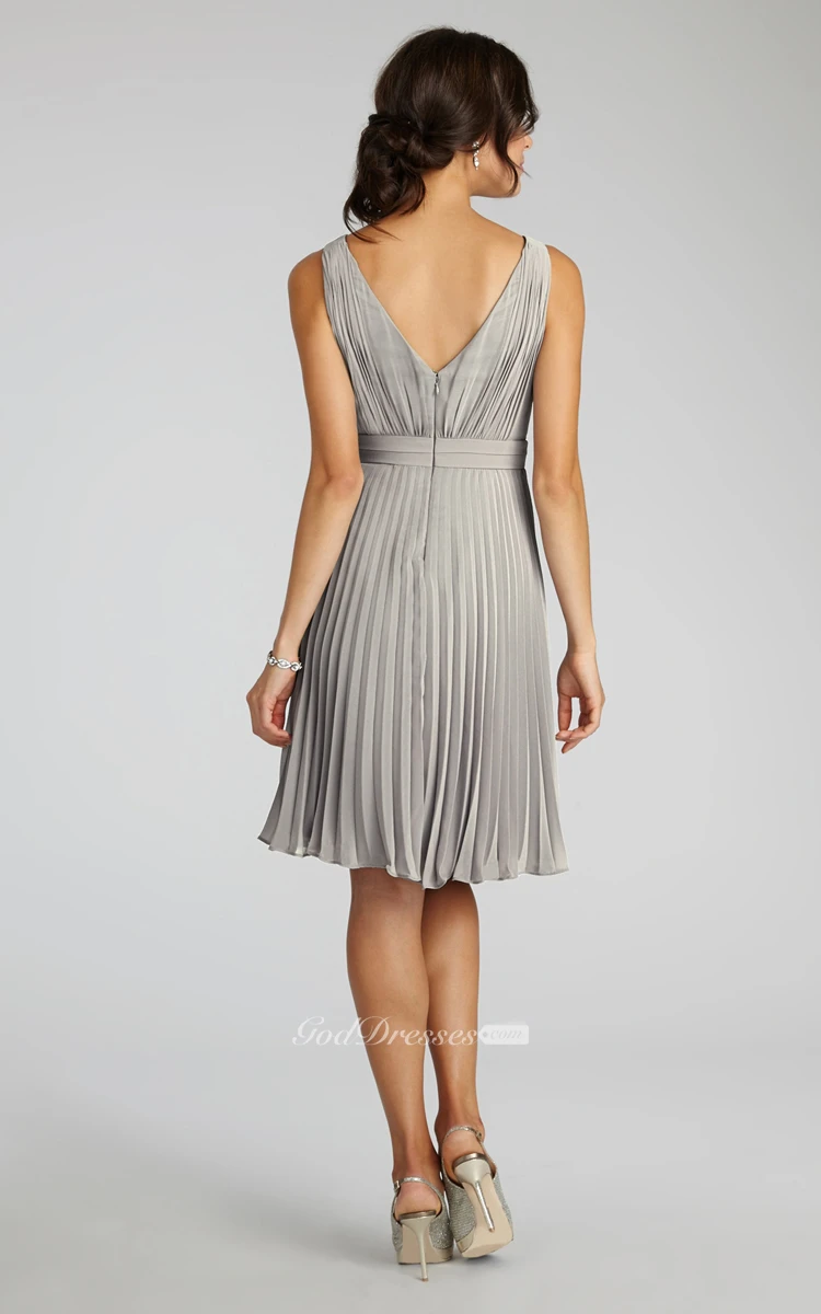 Chiffon A-Line Sleeveless V-Neck Dress With Pleats