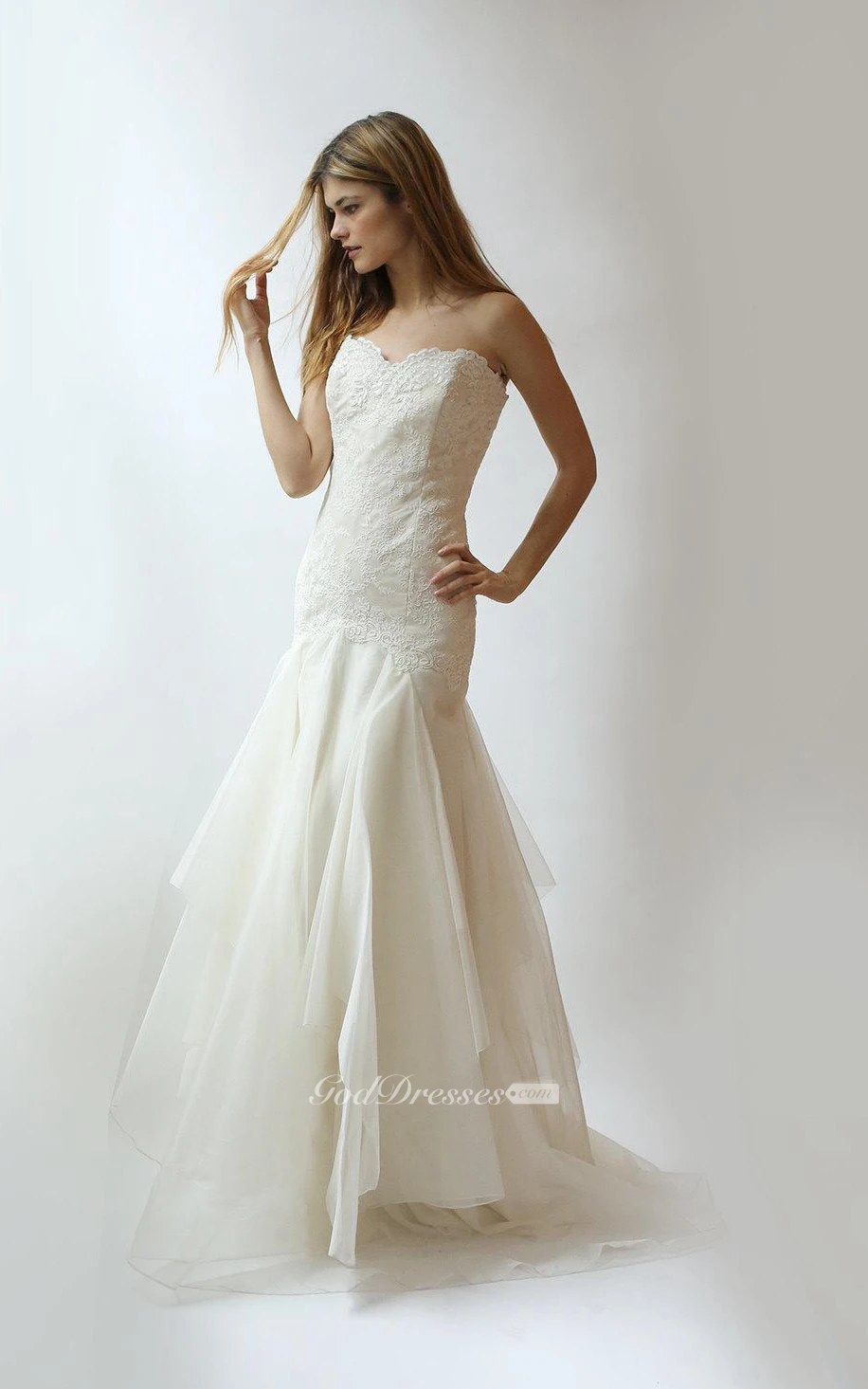 Lace Mermaid Sweetheart Dress With Ruffles