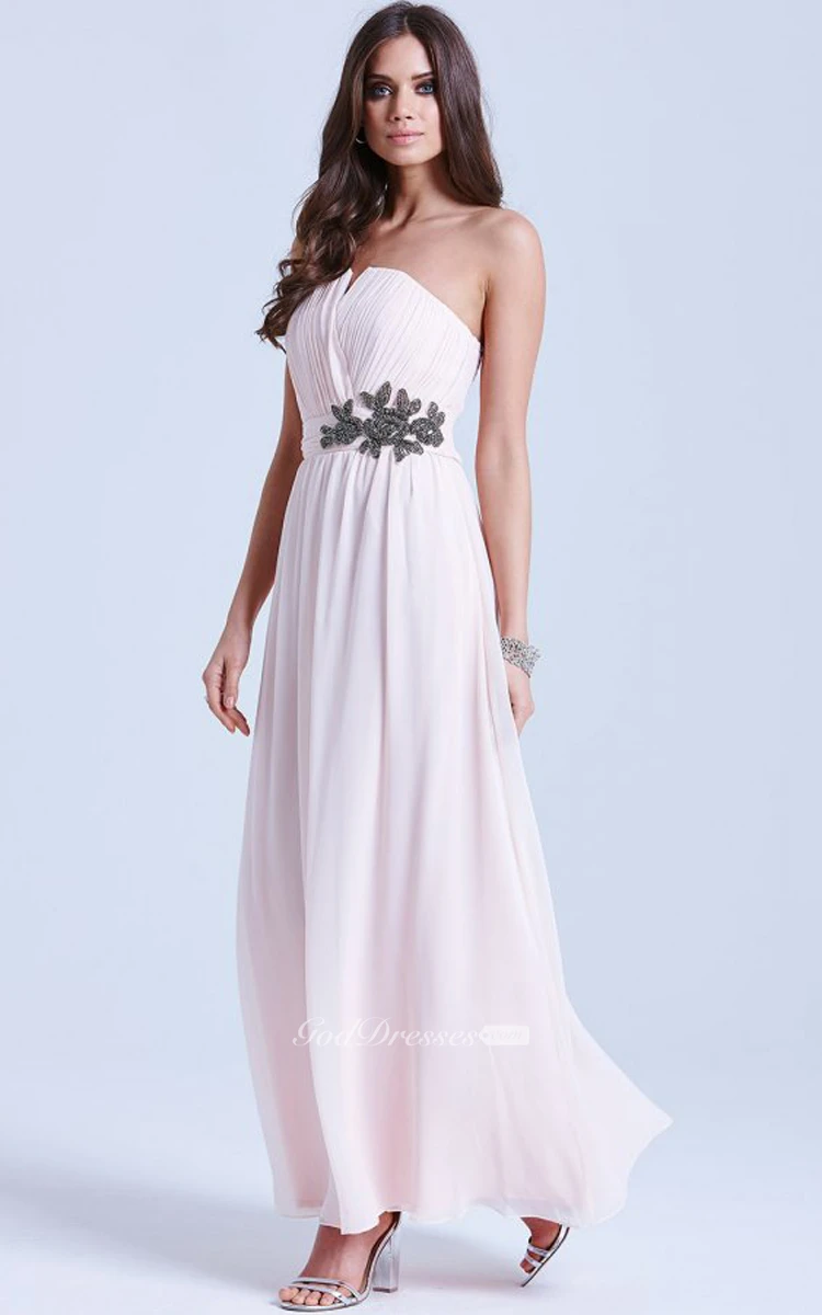 Chiffon Elegant Gown With Notched Neckline