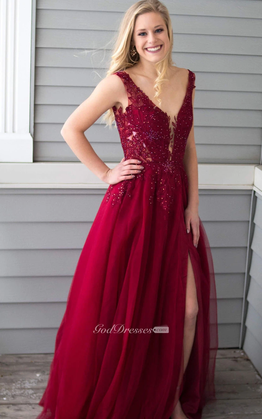 Chiffon Floor-length A Line Sleeveless Romantic Prom Dress with Appliques