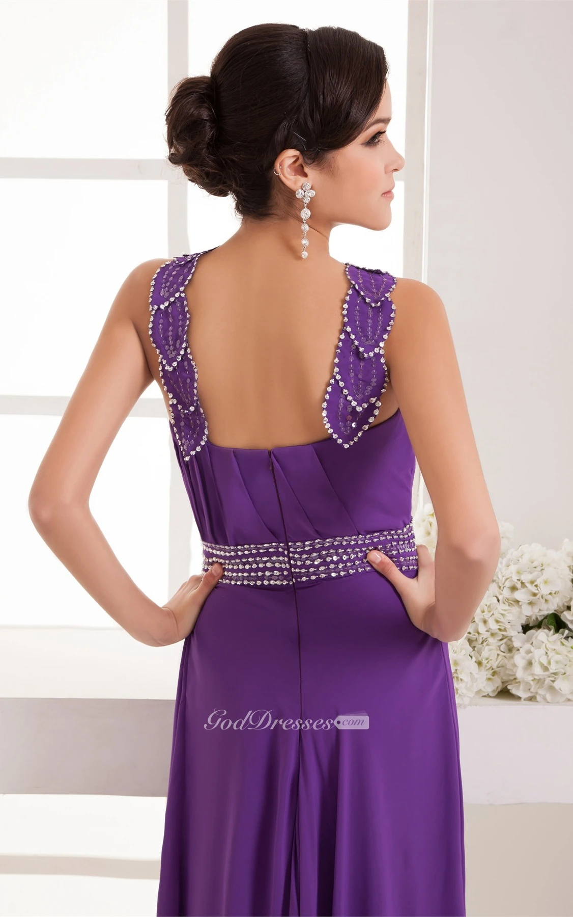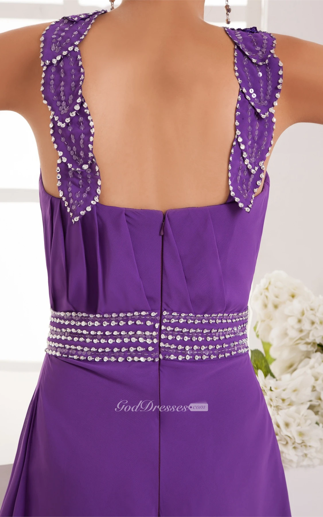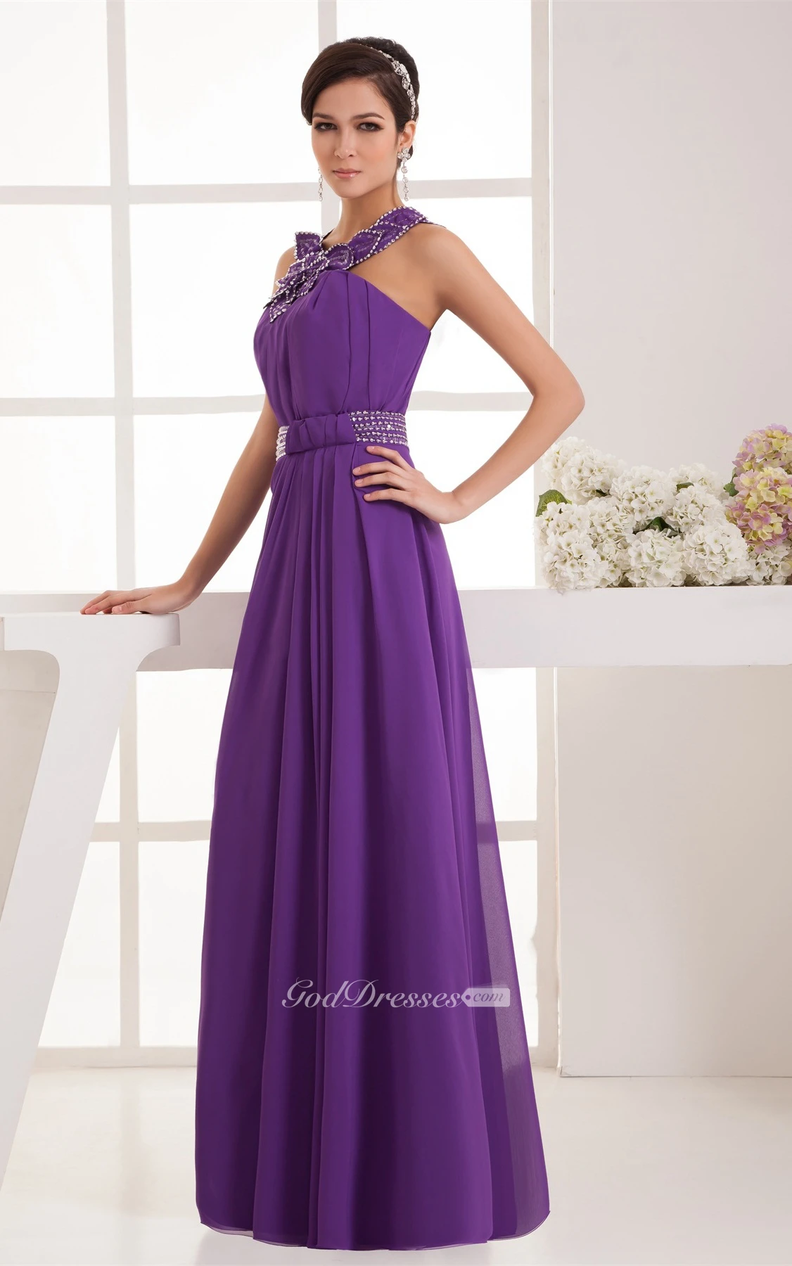 Chiffon Floor-Length Pleated Floral Embellishment and Dress With Beading