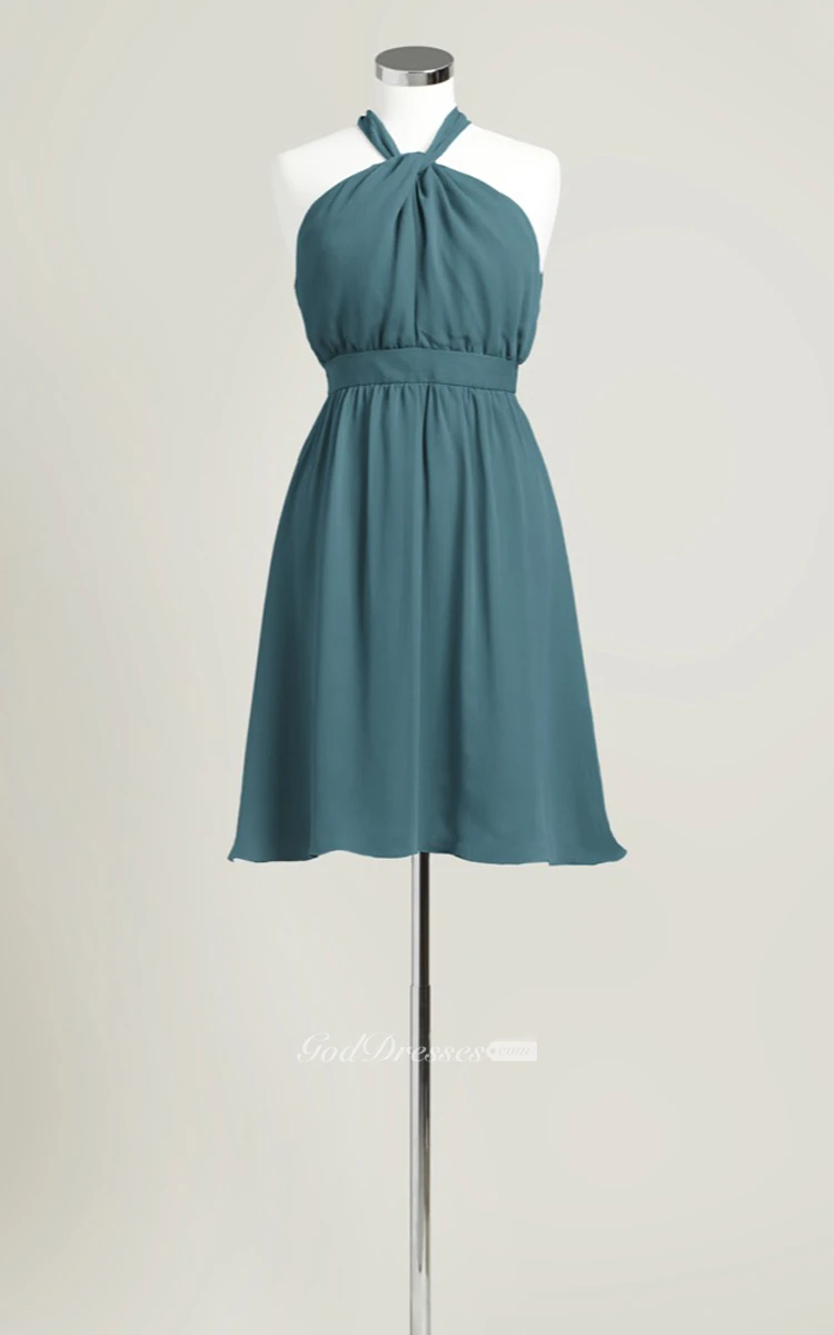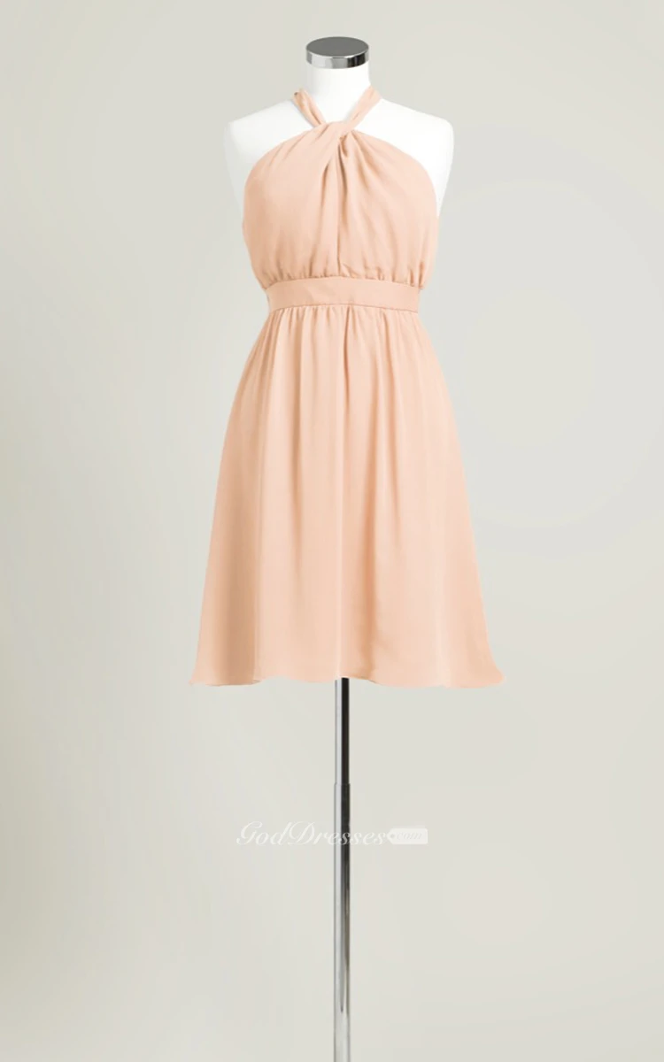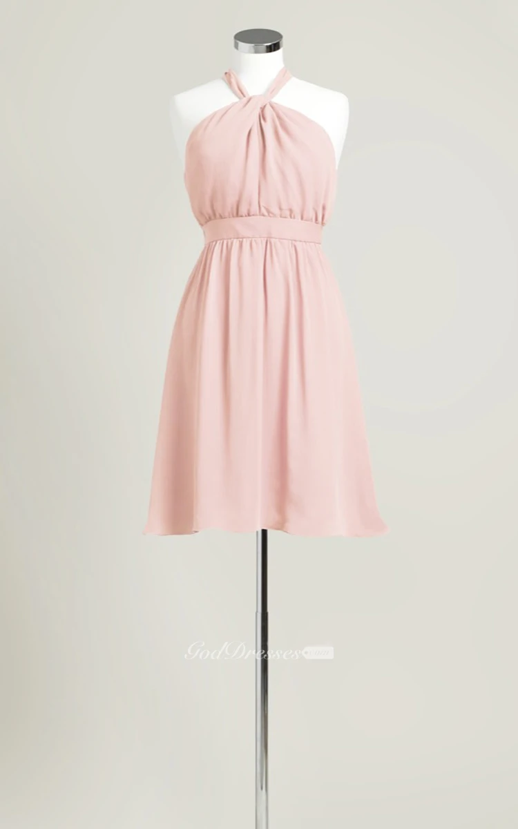 Chiffon Halter-Neck A-Line Sassy Short Dress