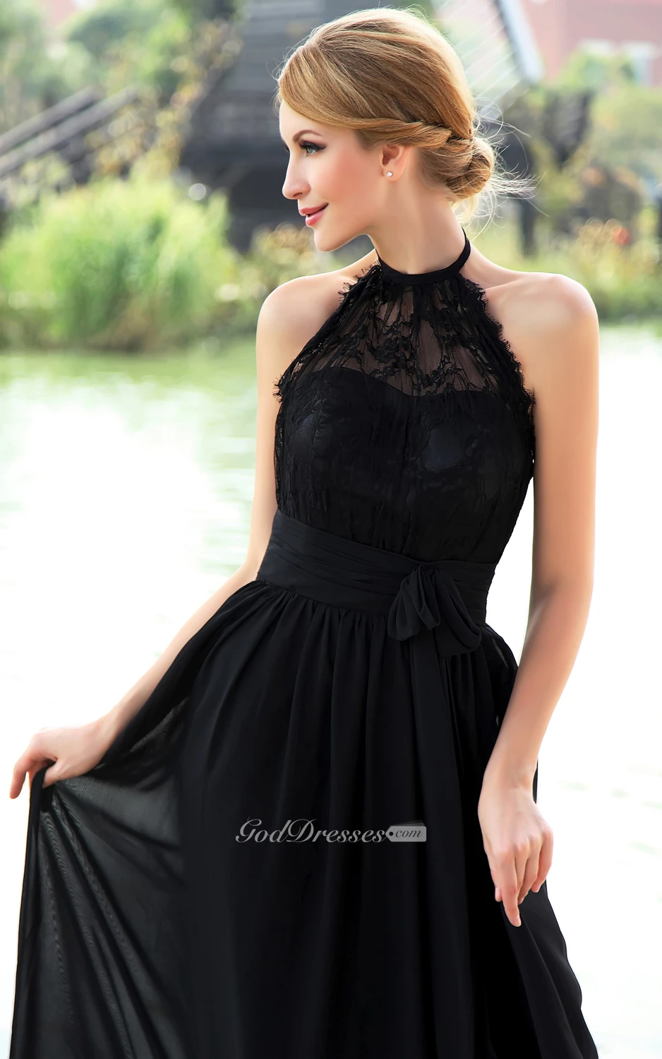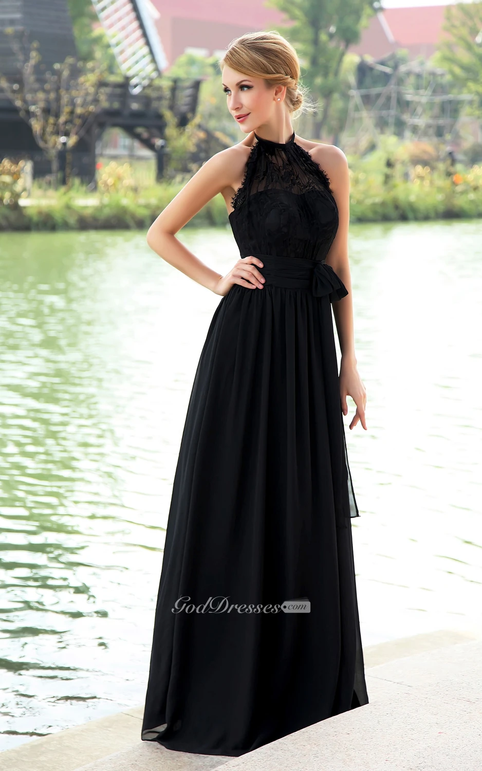 Chiffon High-Neck Strapless Floor-Length Dress With Halter