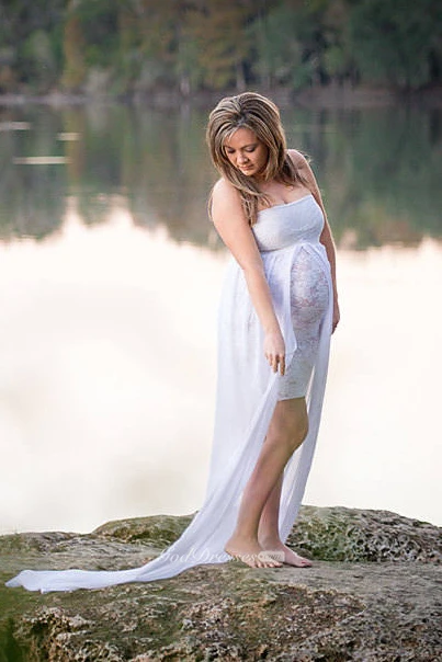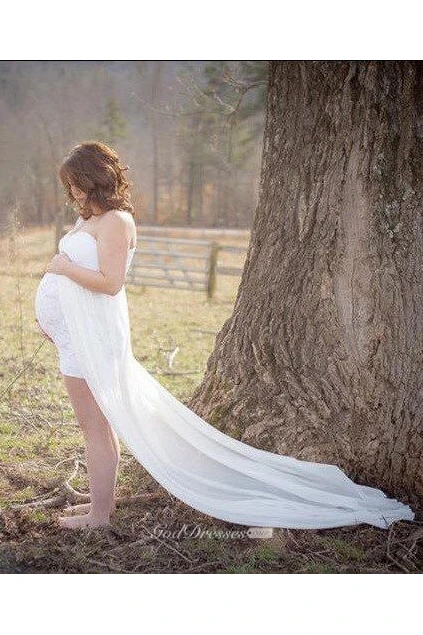 Chiffon Lace A-line Sleeveless Strapless Maternity Wedding Dress with Split Front