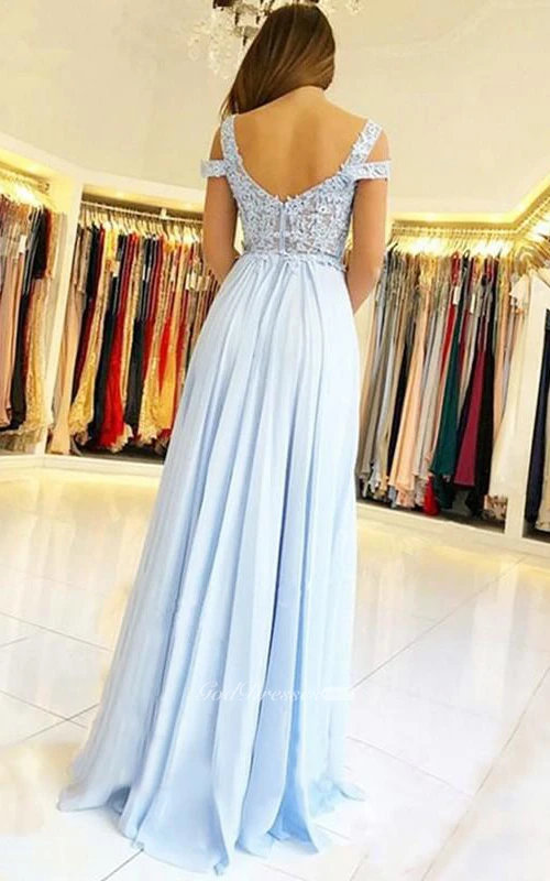 Chiffon Lace Floor-length A Line Short Sleeve Elegant Formal Dress with Pleats