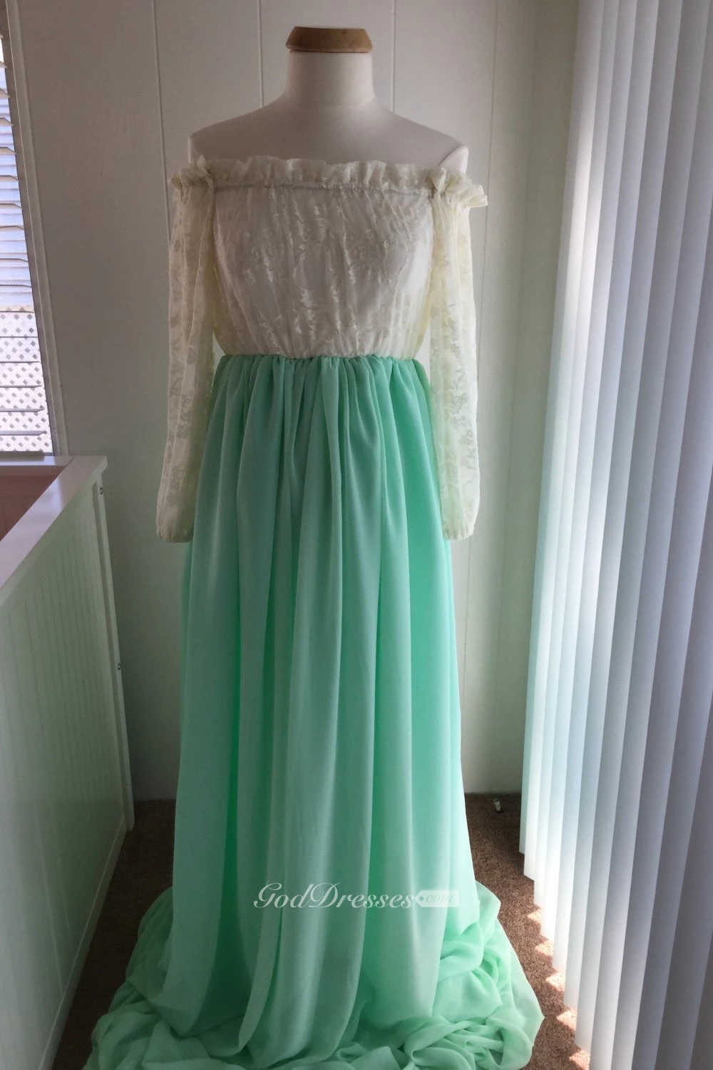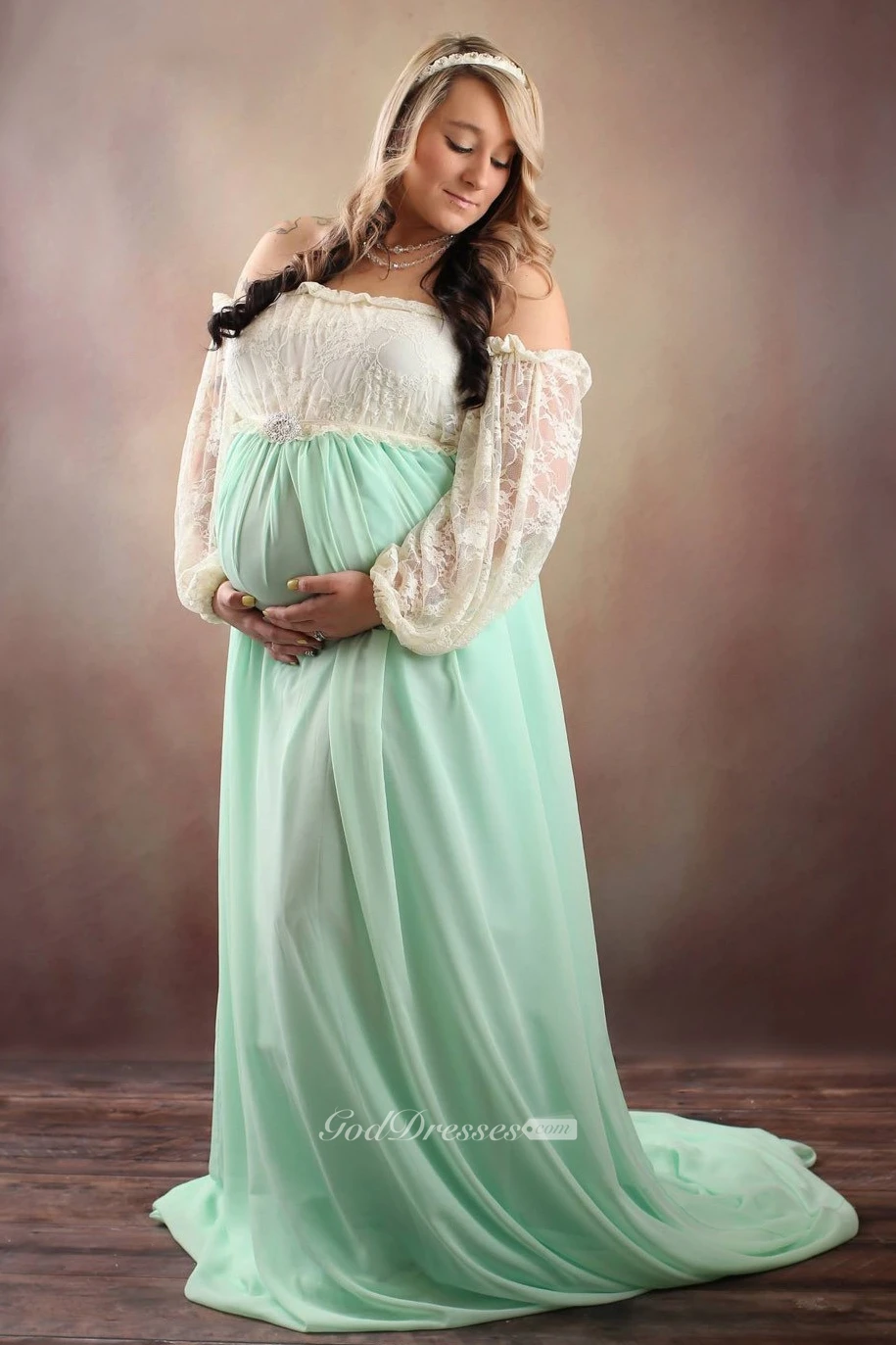 Chiffon Lace Illusion Long Sleeve Off-the-shoulder Maternity Dress