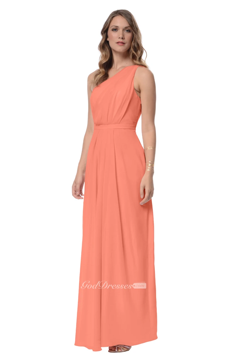 Chiffon Long A-Line Glamorous One-Shoulder Dress