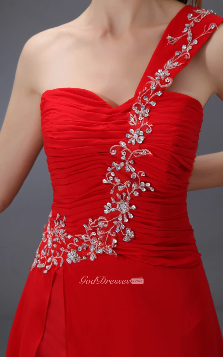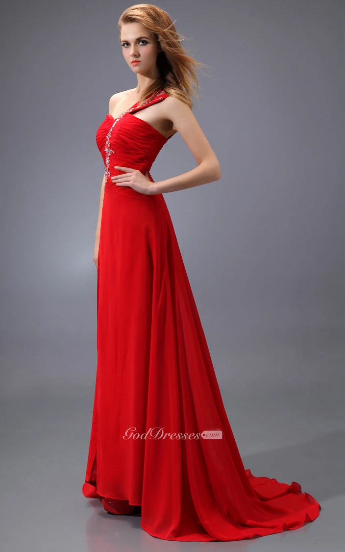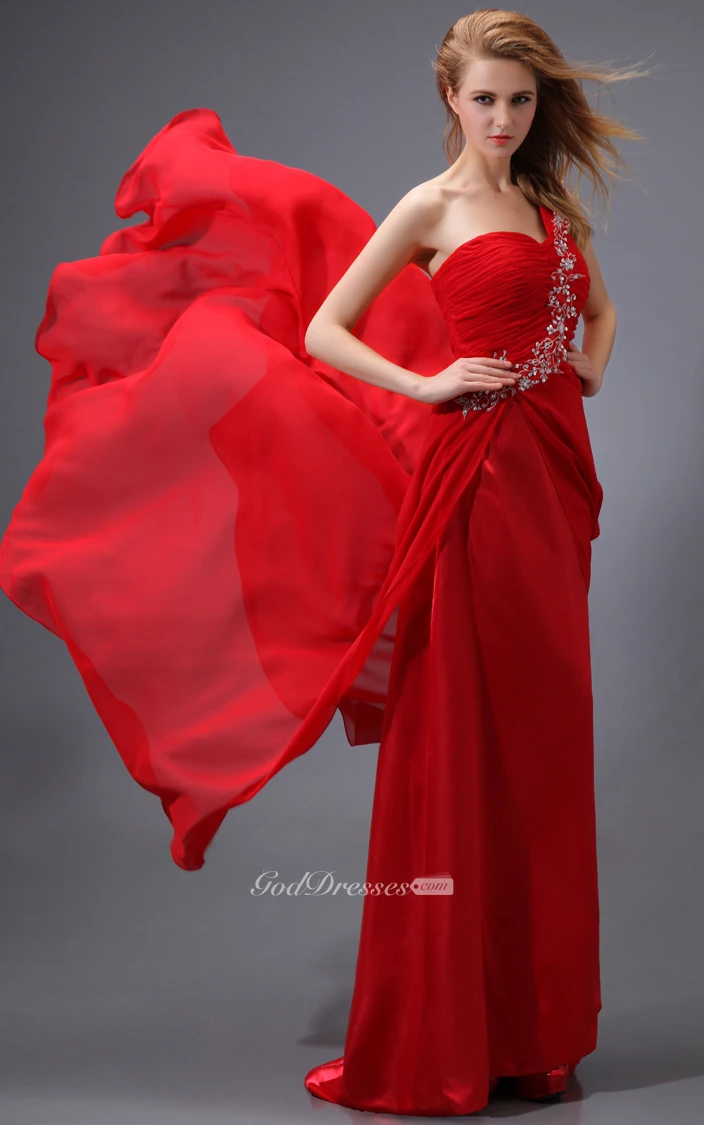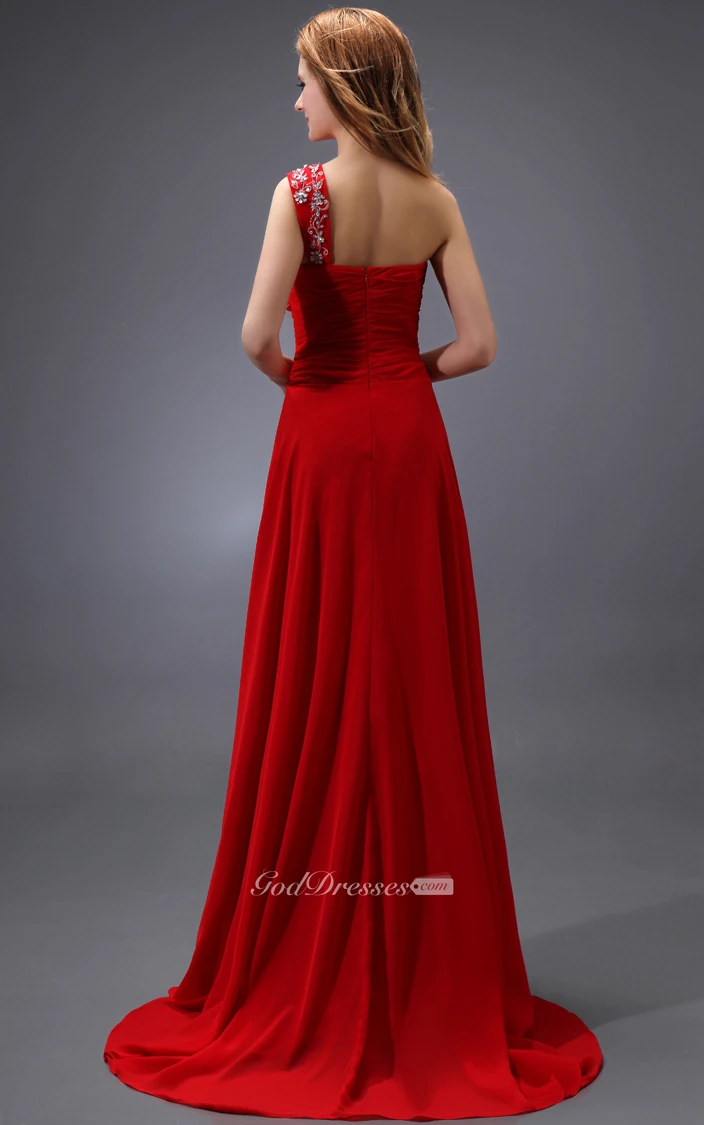 Chiffon Ruched Floor-Length Dress With Beaded Strap