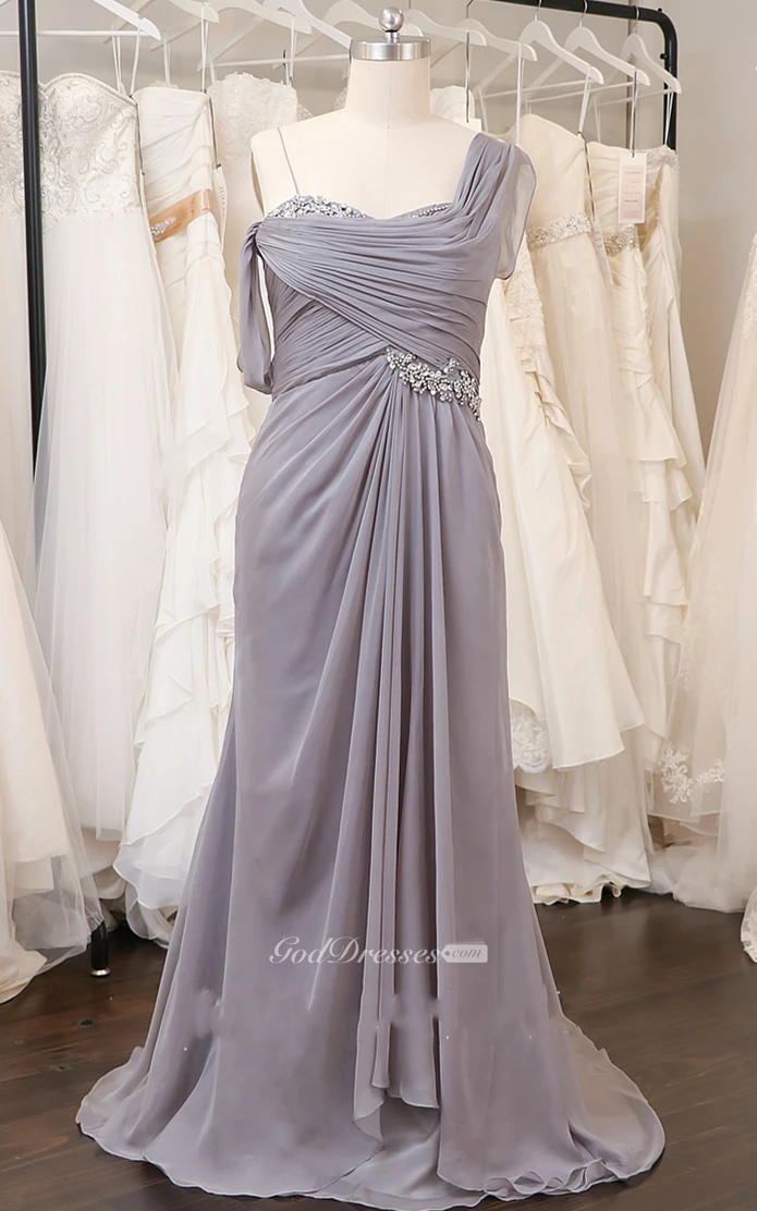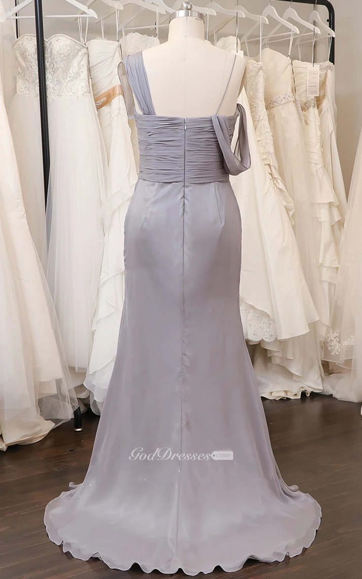 Chiffon Sheath One-shoulder Prom Dress with Beadings