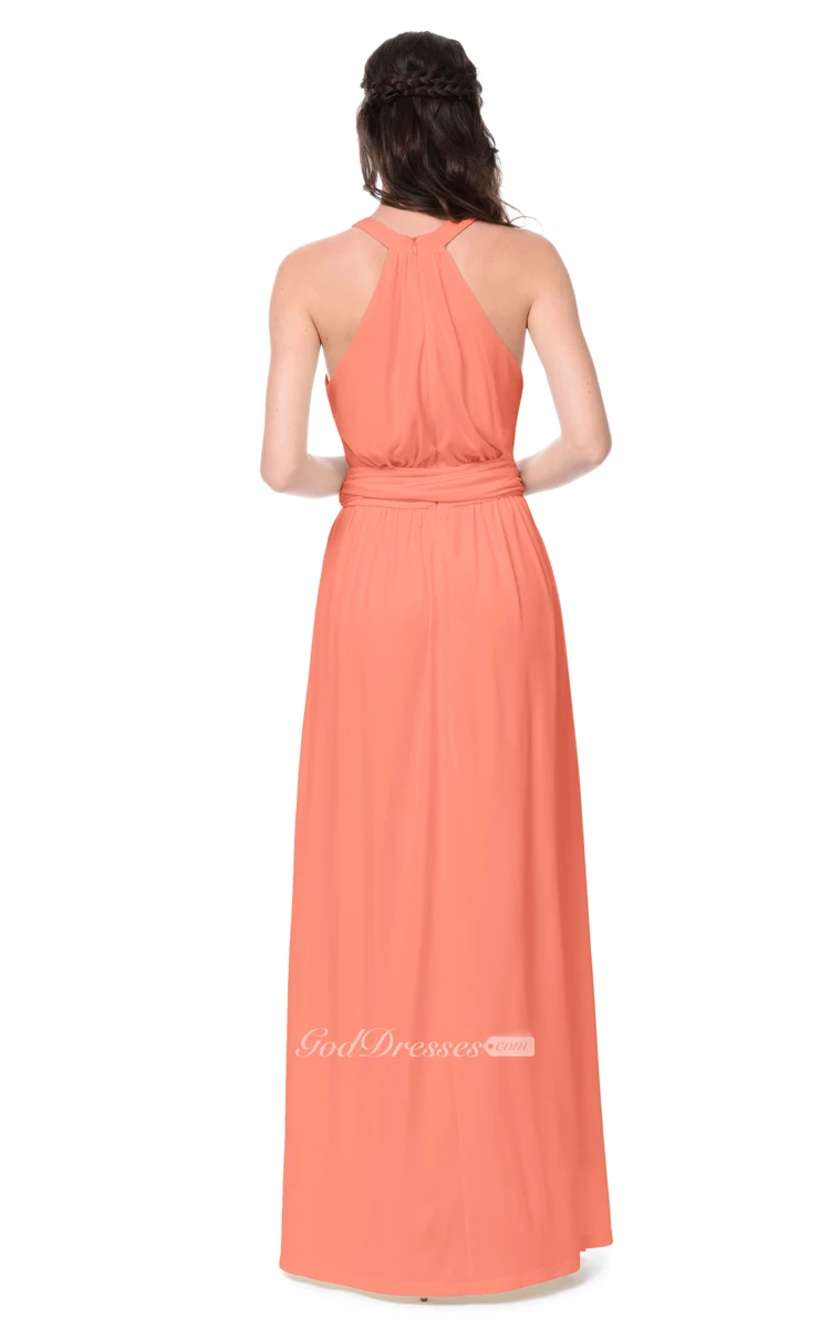 Chiffon Sleeveless Delicate Dress With Bow Sash