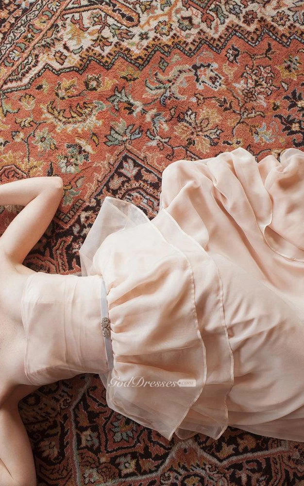 Chiffon Sleeveless Sweetheart A-Line Dress With Tiers and Beaded Waistbelt