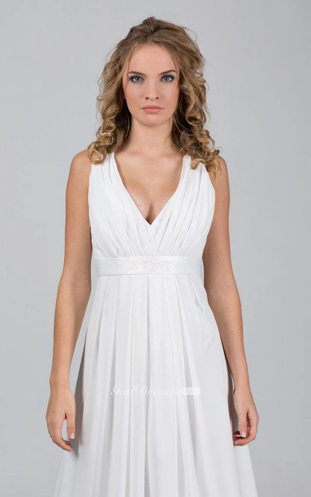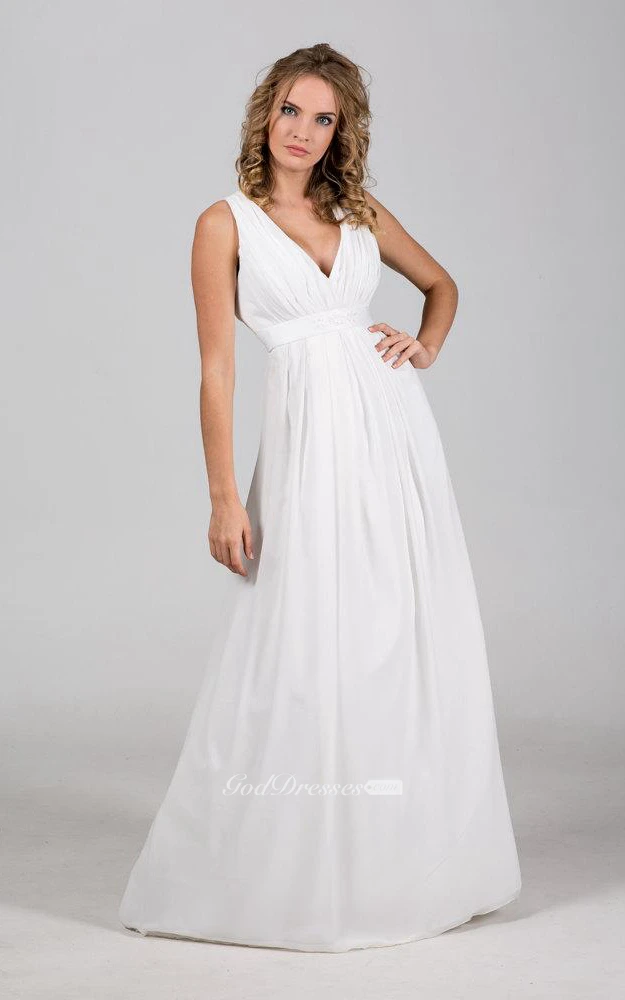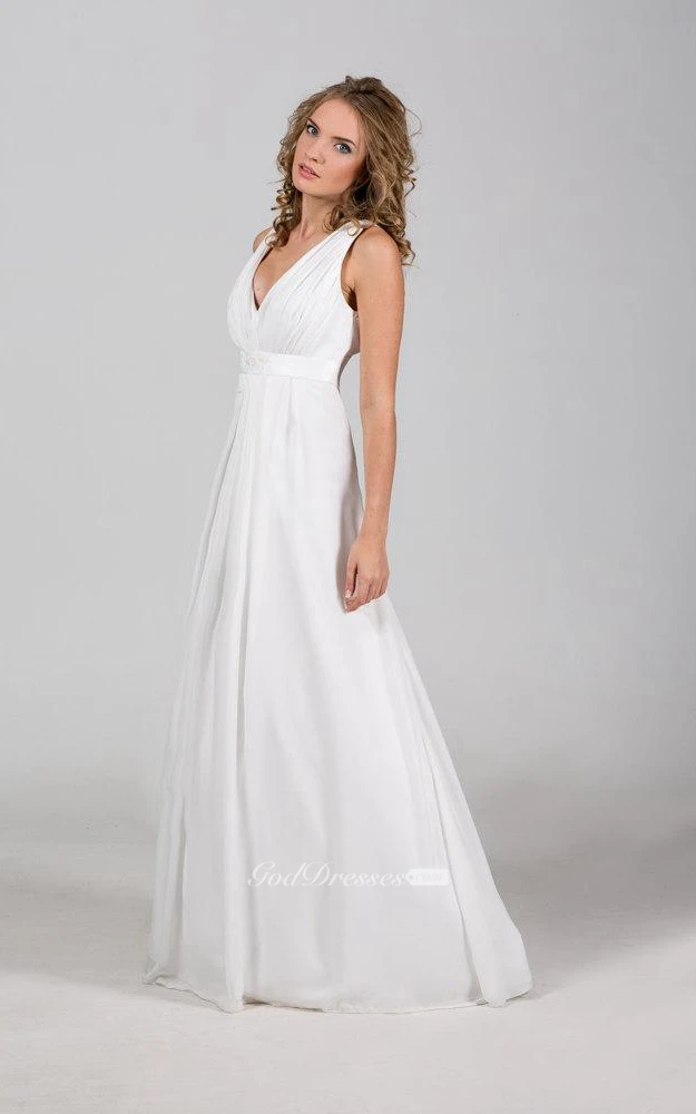 Chiffon V-Neck Sleeveless Long Bridal Gown With Pleats