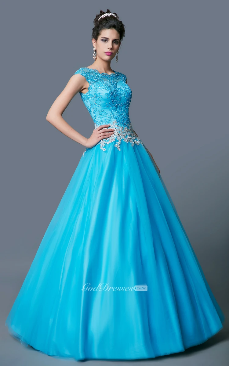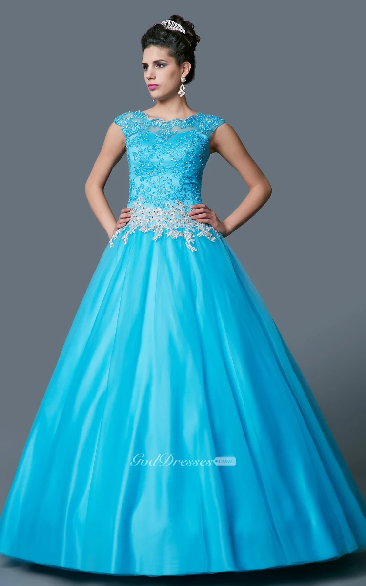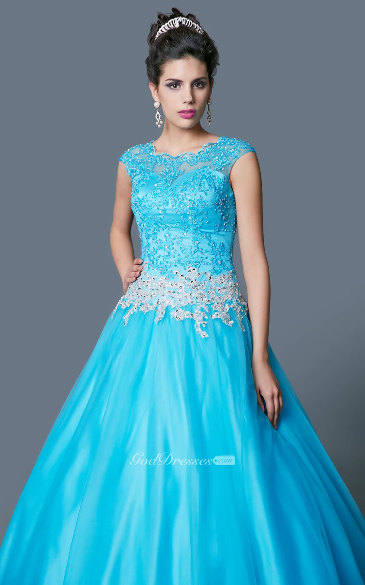 Classic Bateau Neck Lace and Tulle Ball Gown