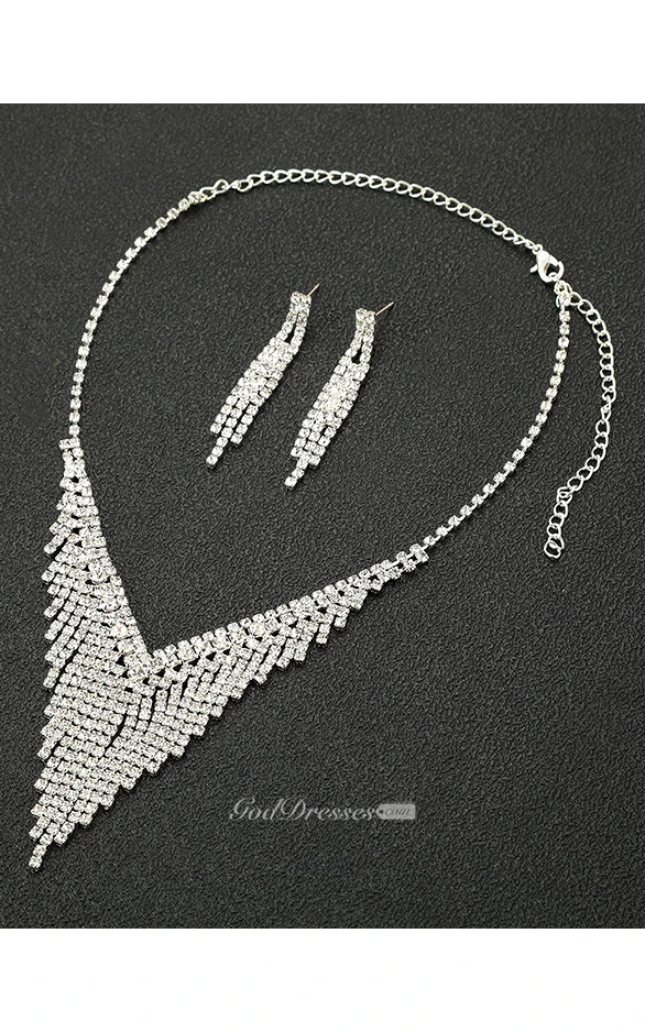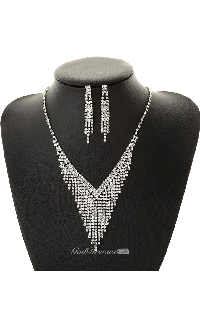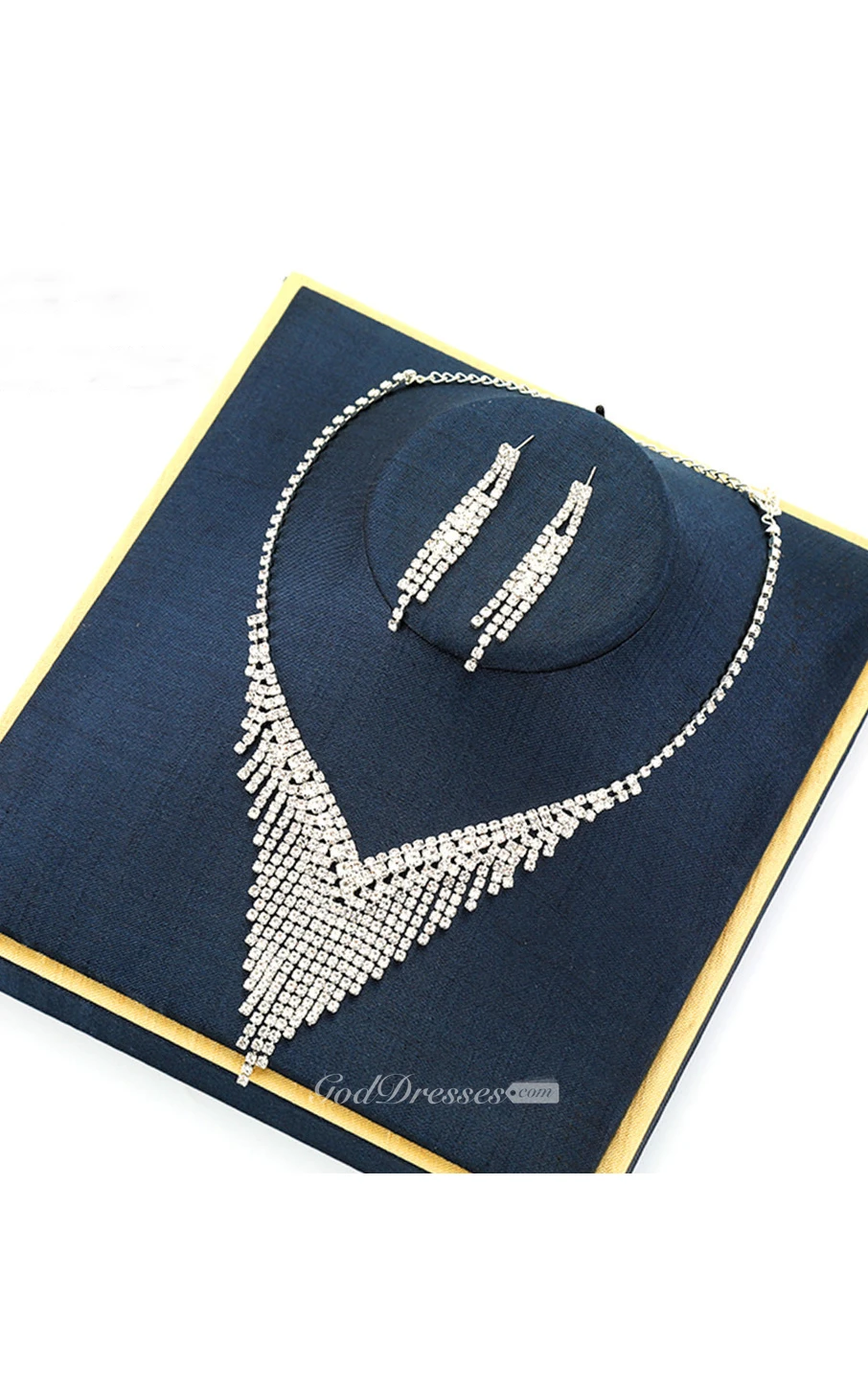 Classic Bridal and Evening Party Rhinestone Necklace and Earrings Jewelry Set