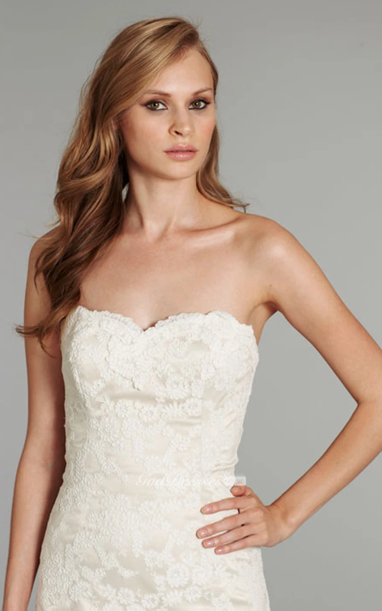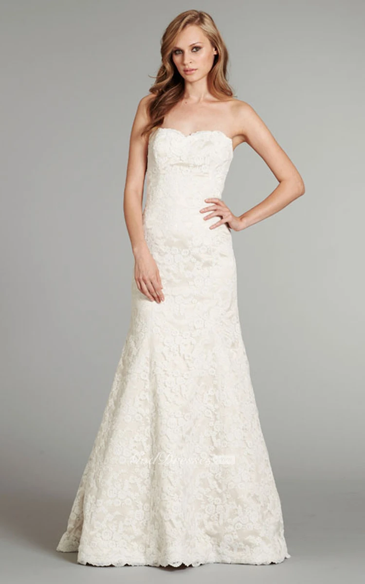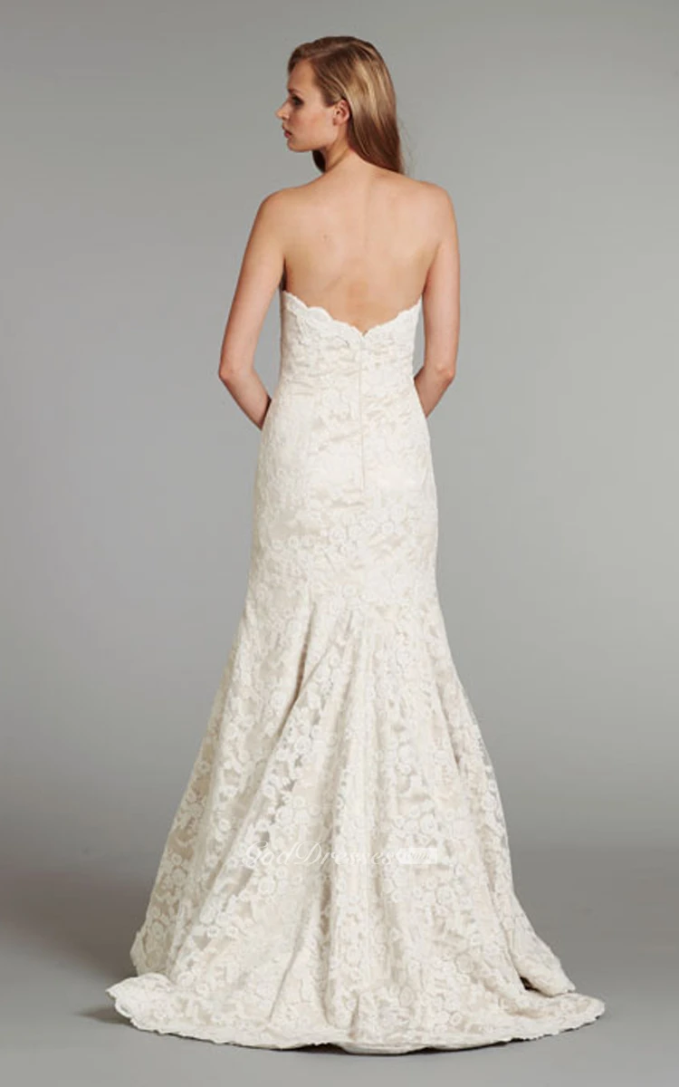 Classic Strapless Floor Length Lace Gown With Scalloping on the Hem