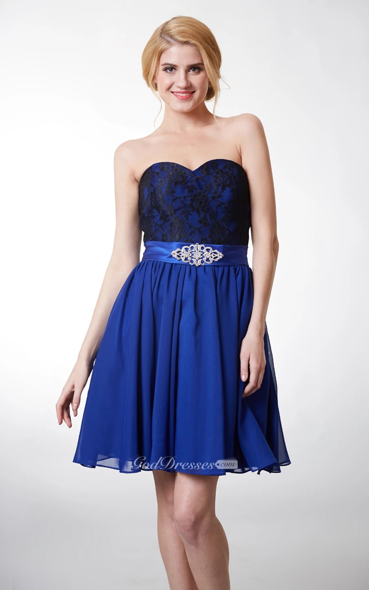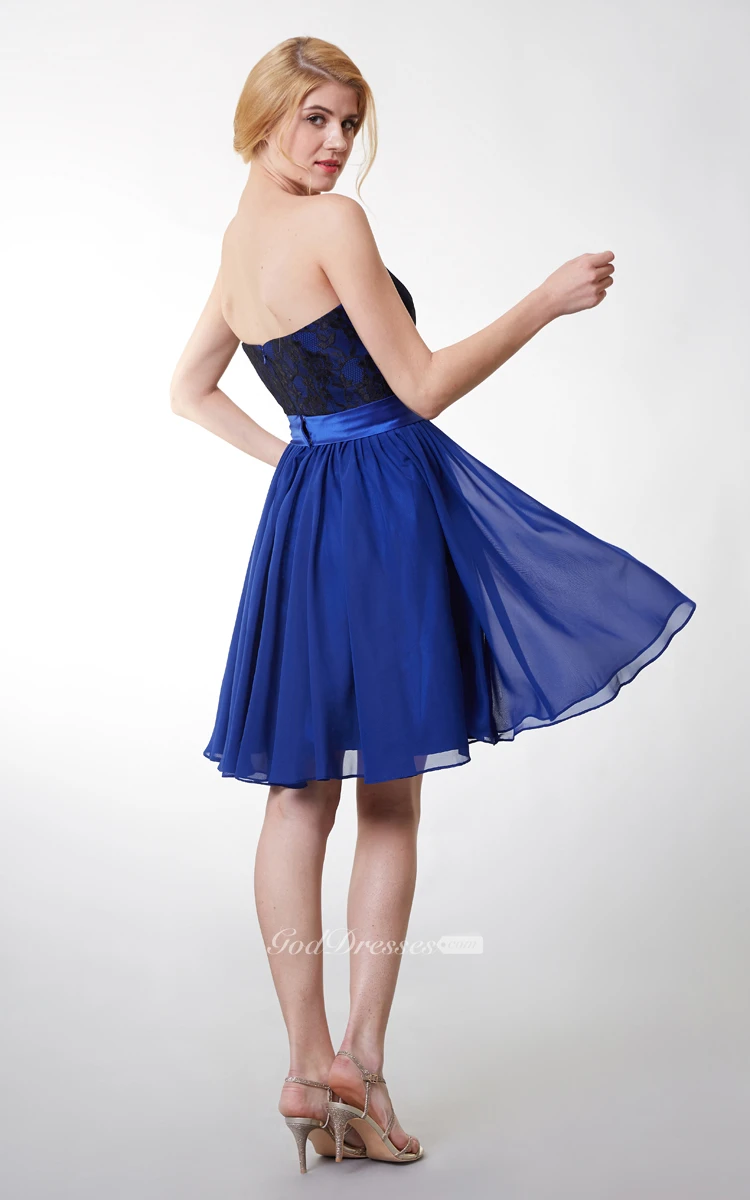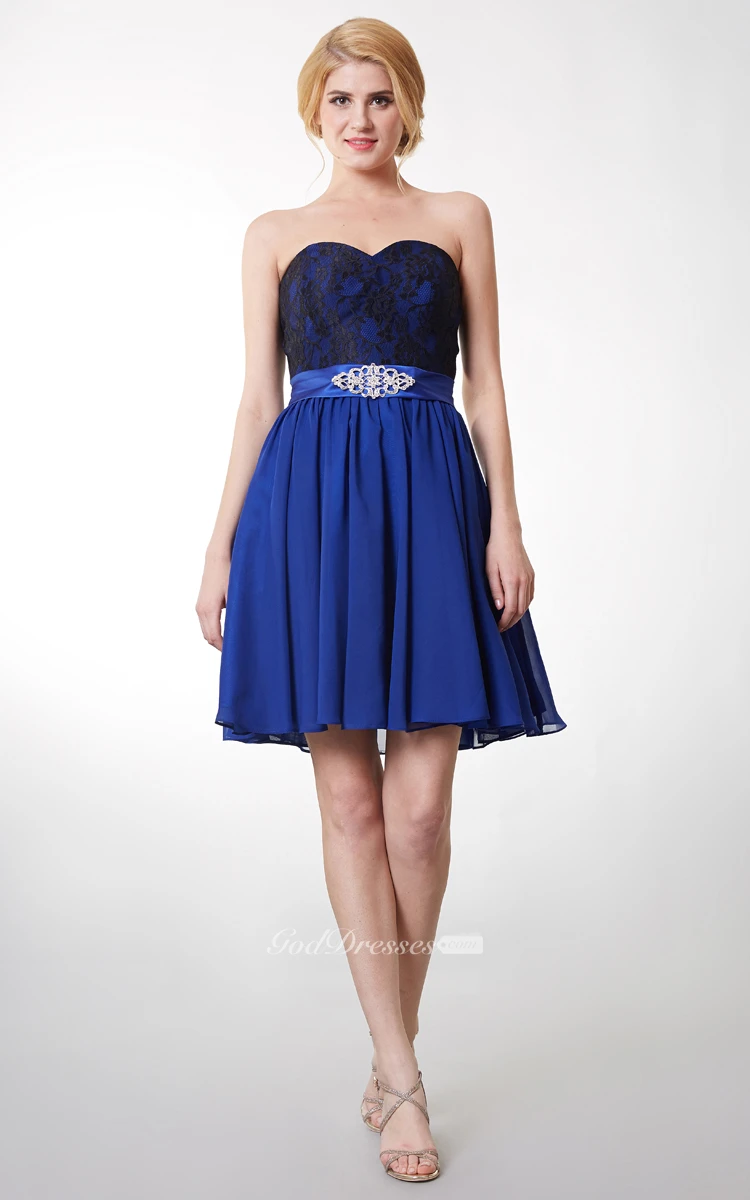 Classic Strapless Sweetheart Top-laced Layered A-line Chiffon Dress