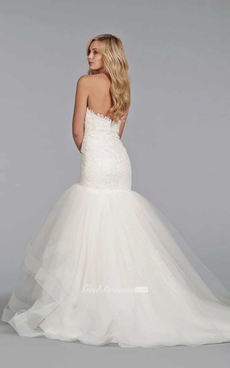 Classic Sweetheart Neckline Lace Bodice Tiered Tulle Dress