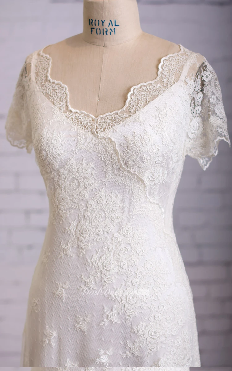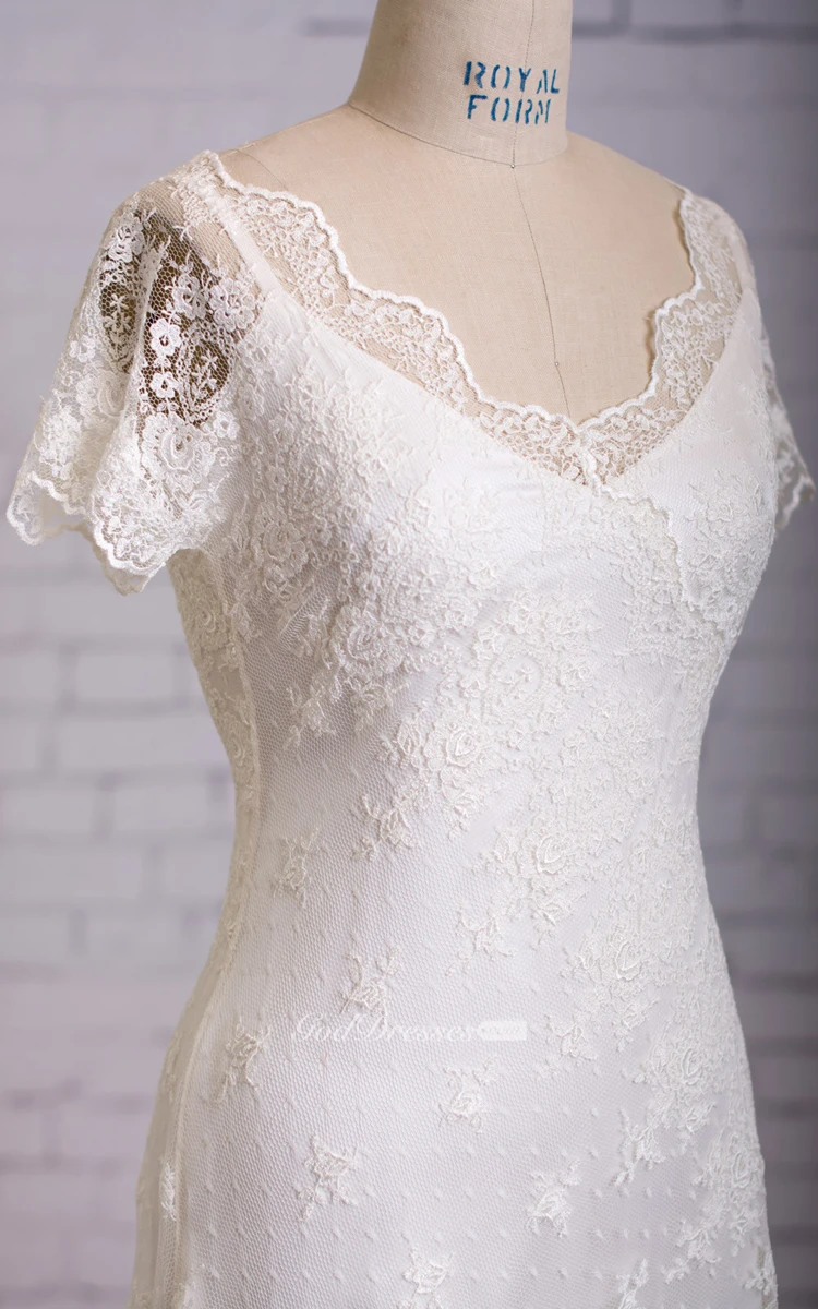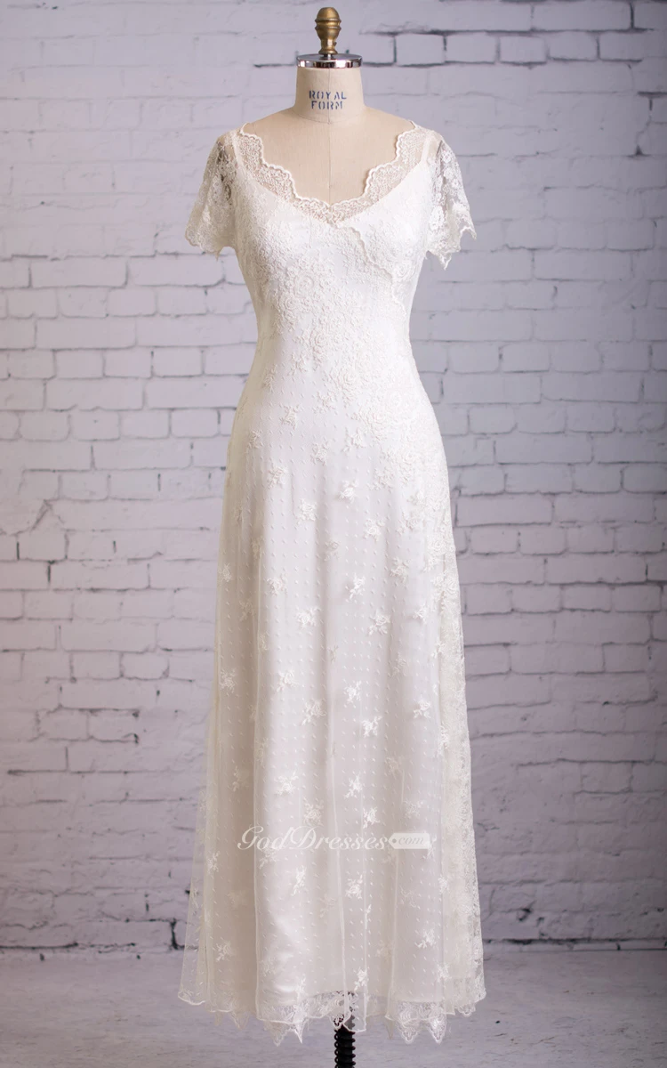 Column Cap-Sleeved Dress With Scalloped Edge Neckline