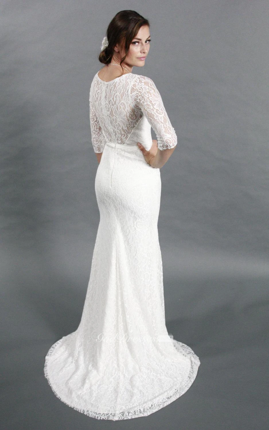 Column Half Sleeve Jewel Neck Lace Dress With Illusion Back