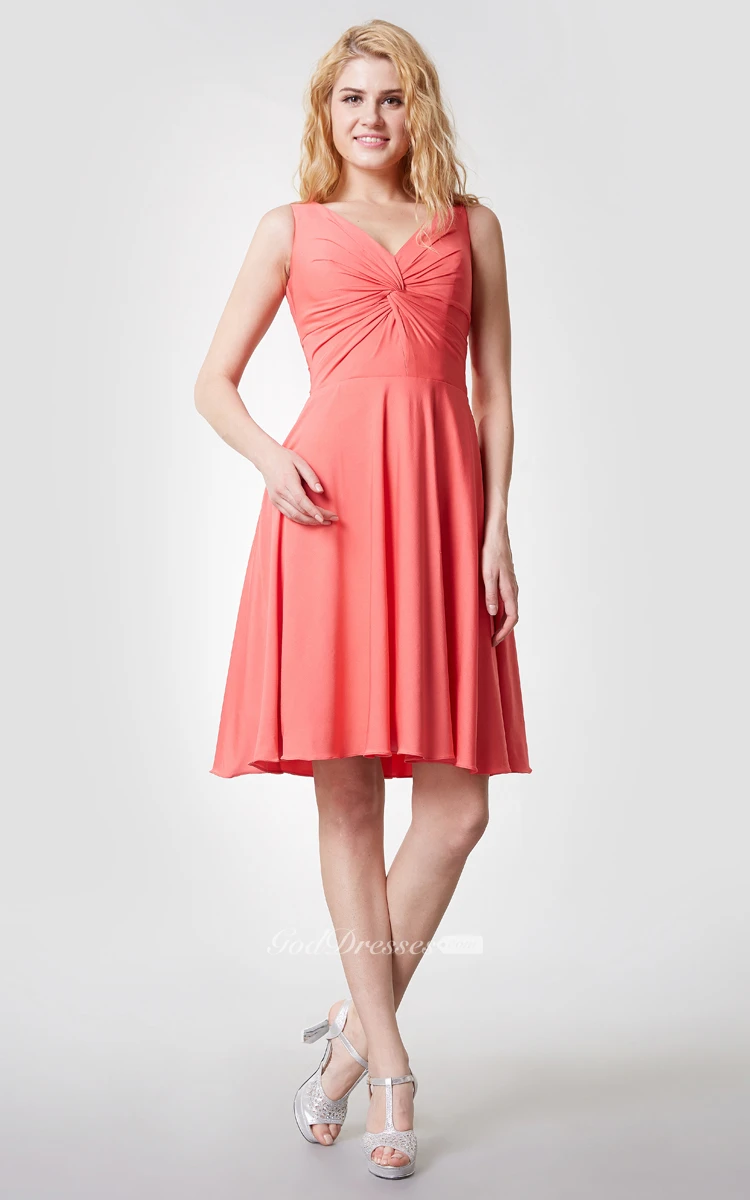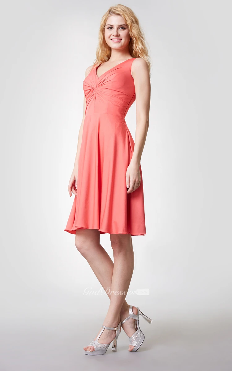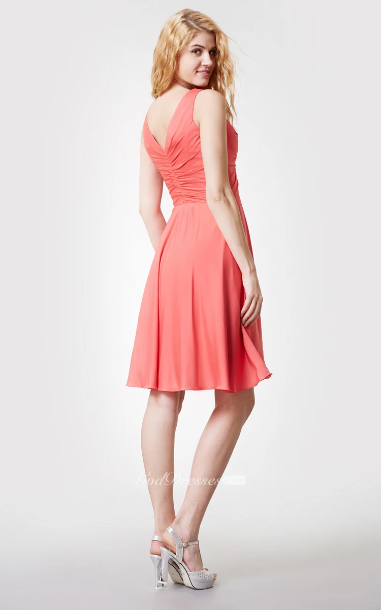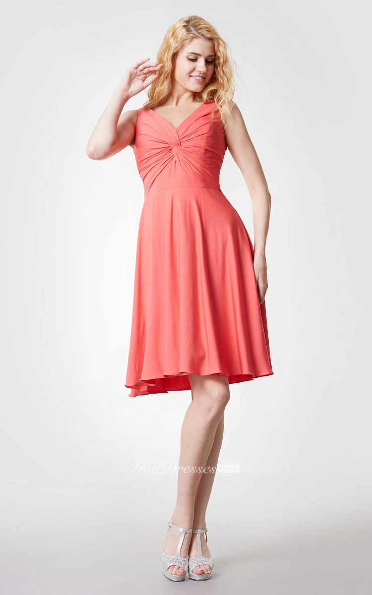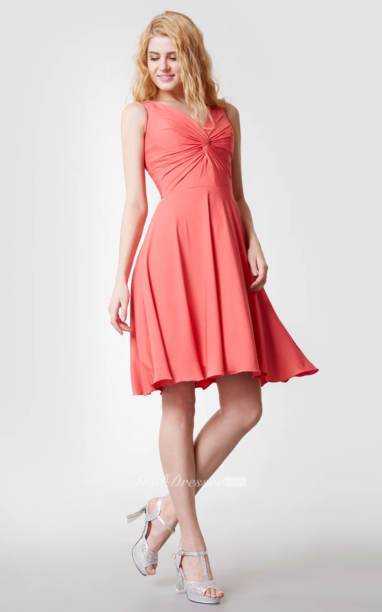 Comfortable V Neck Knee Length Jersey Dress With Ruching