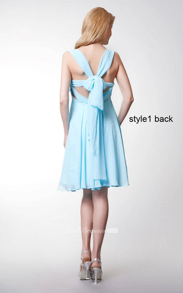 Convertible Cap Sleeve Short Chiffon Dress With Pleats