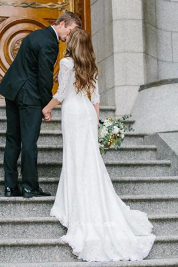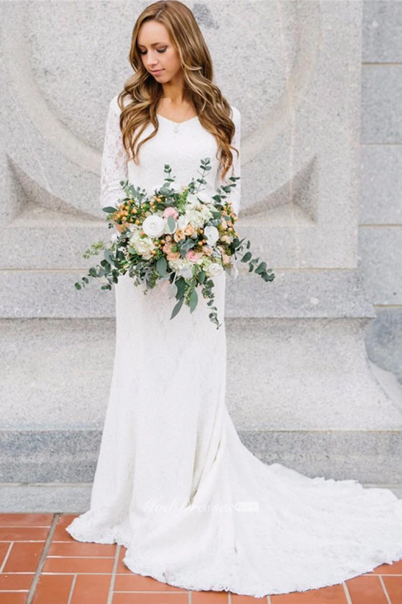 Beautiful dress. Modest and unique. Comfy and the lace is delicate. Our big day was a dream come alive!