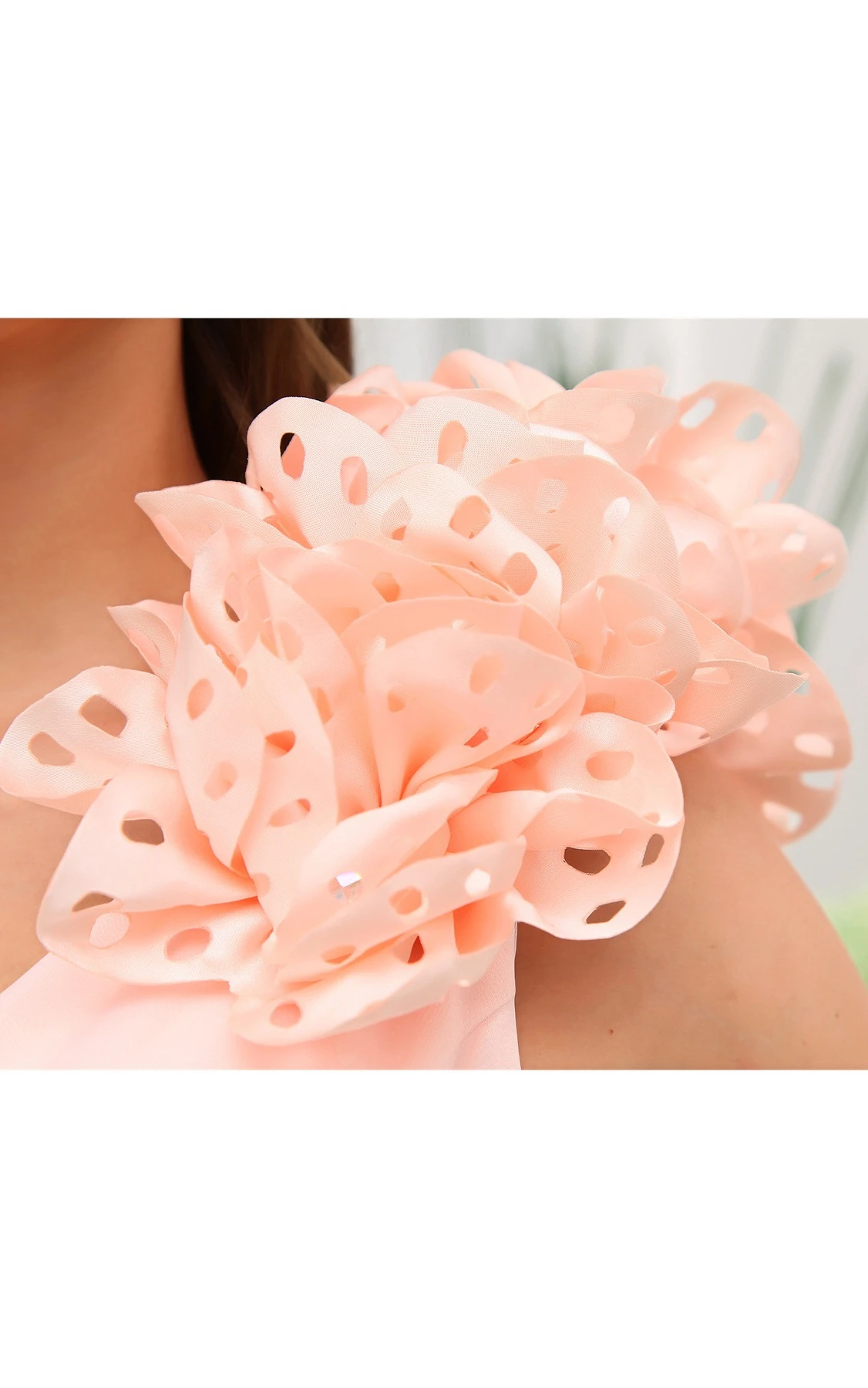 Criss-Cross A-Line Mini Tulle Dress With Single Floral Strap