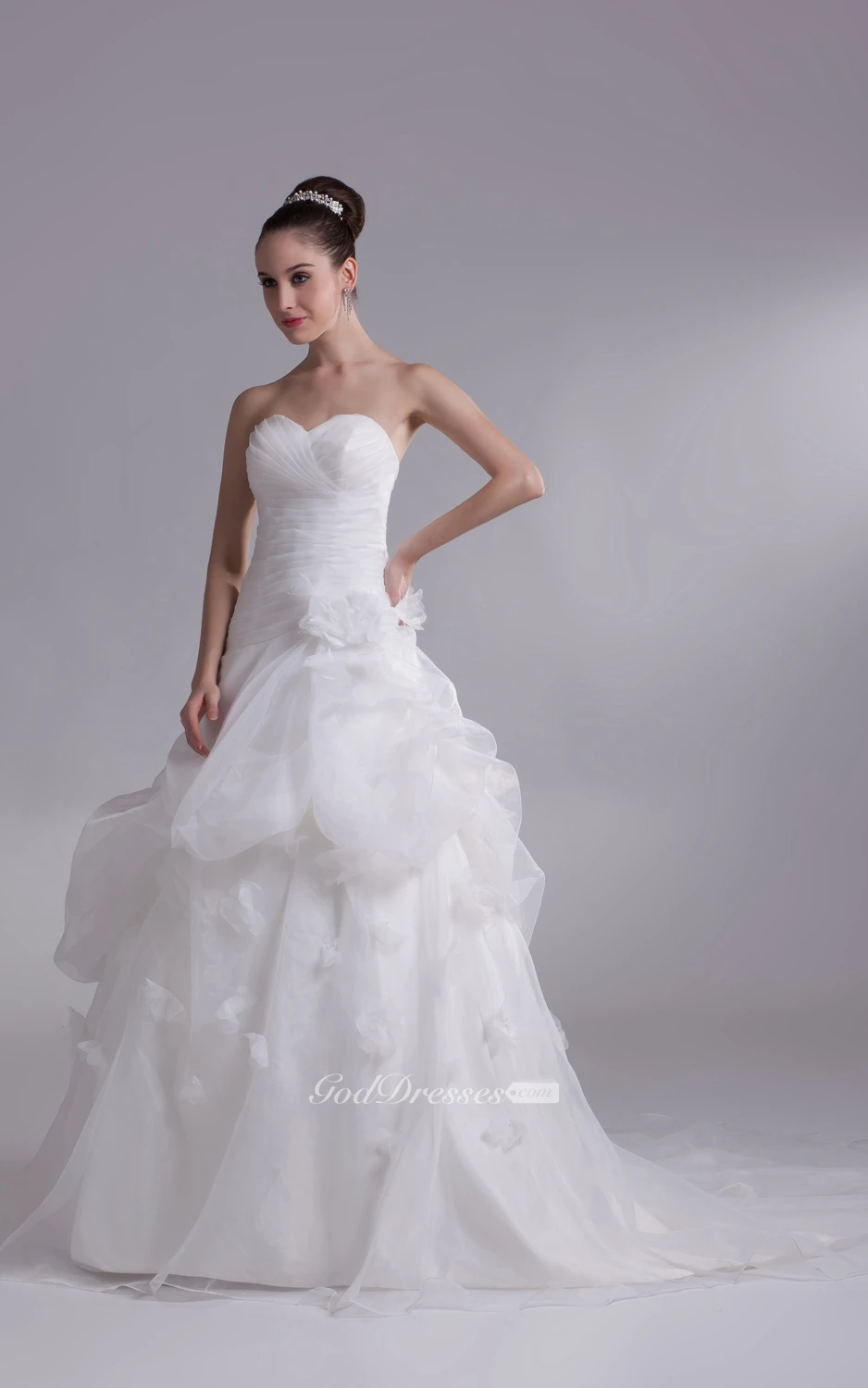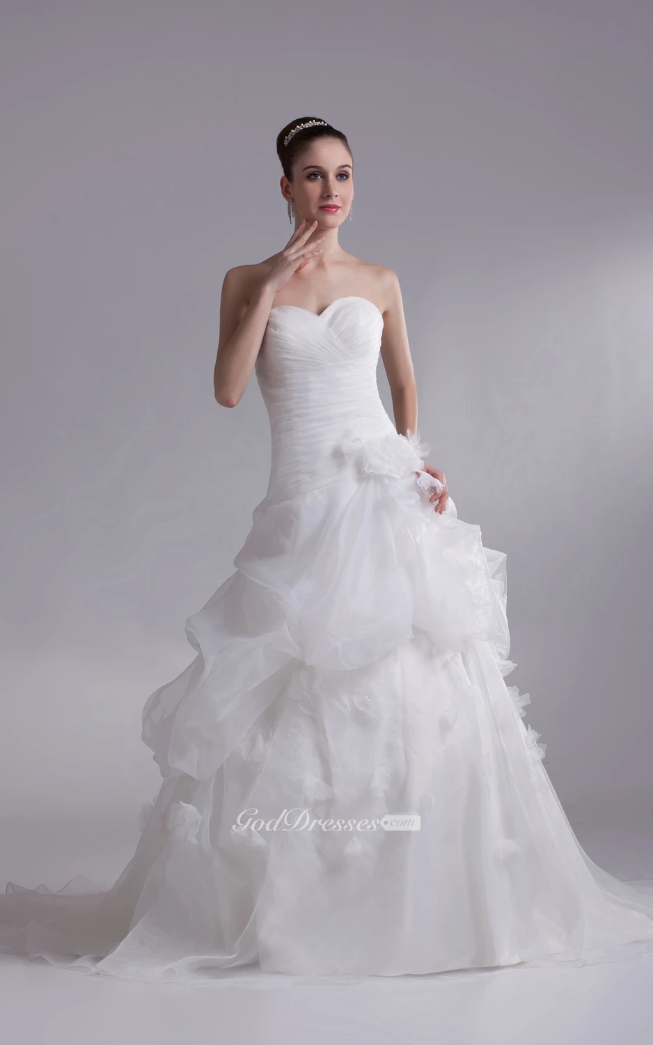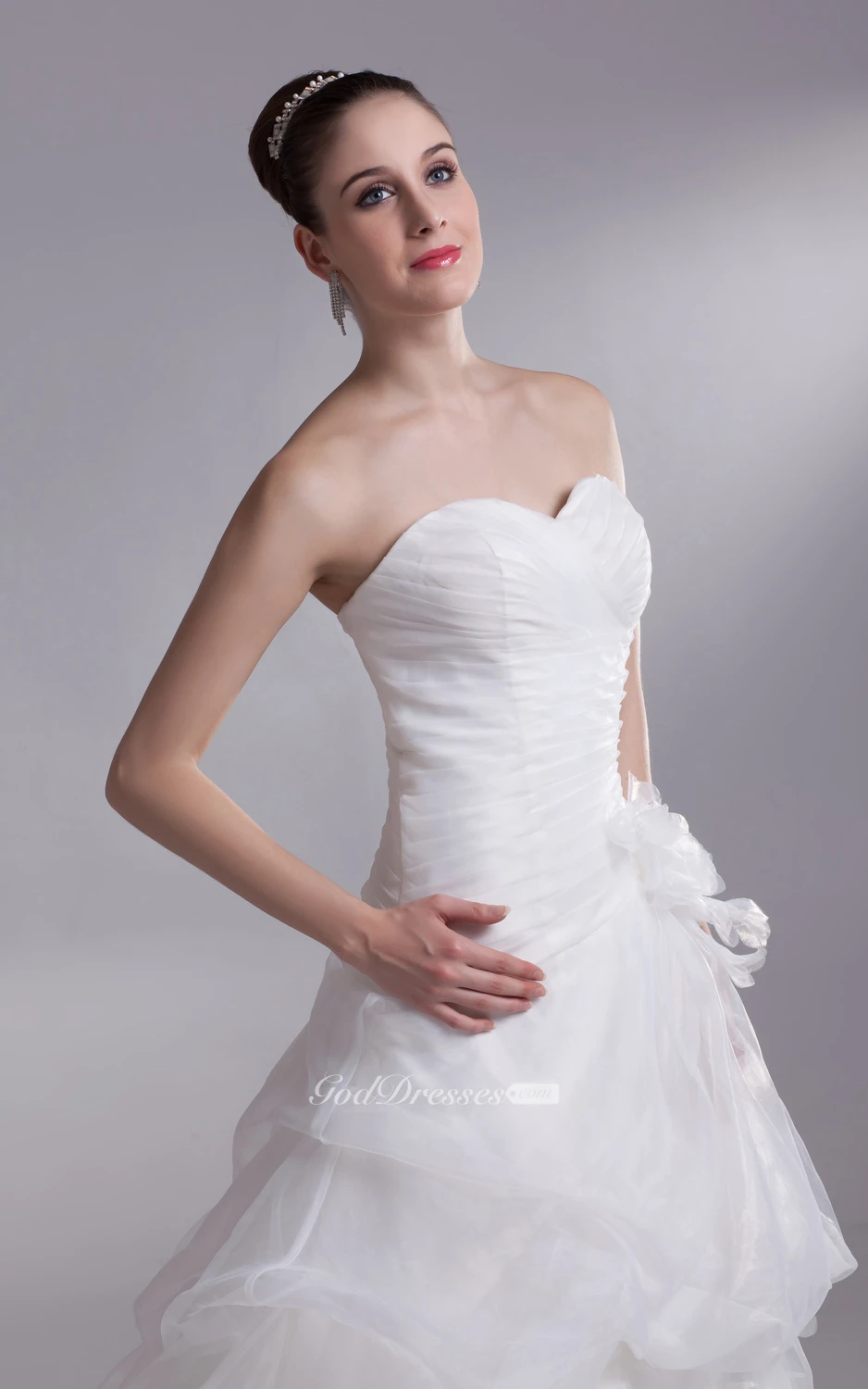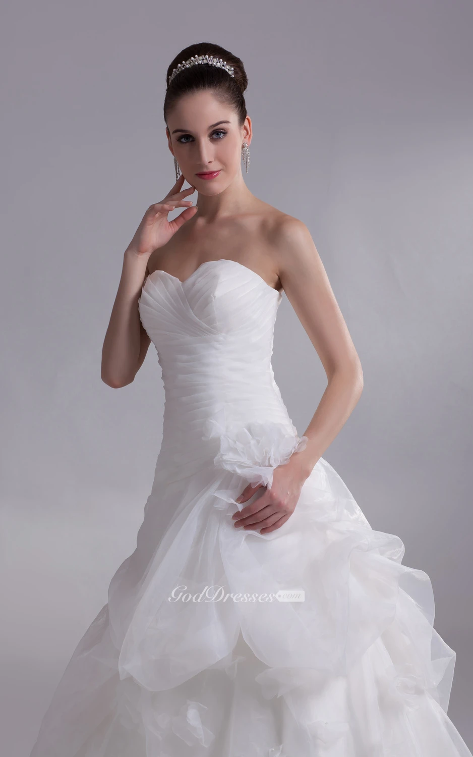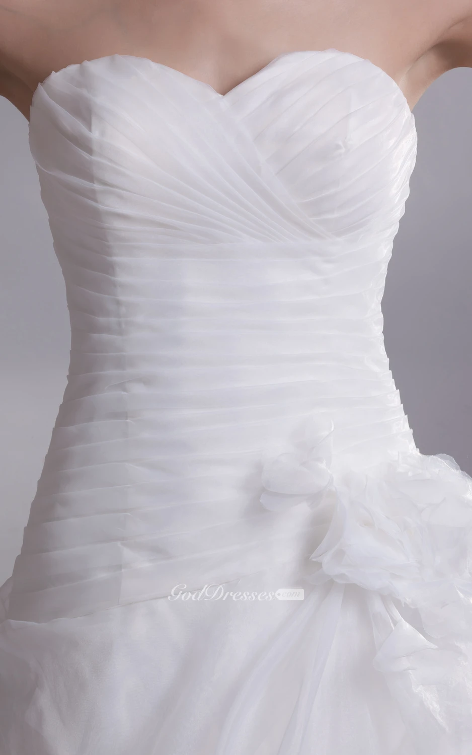 Criss-Cross Ruching Organza A-Line Dress With Flowers