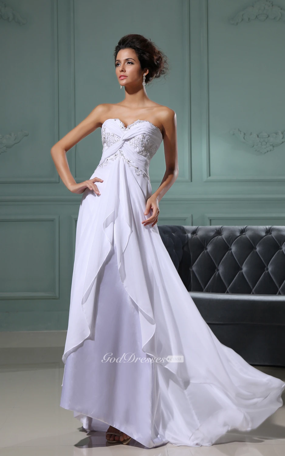 Criss-Cross Ruching Sweetheart Chiffon Dress With Brush Train