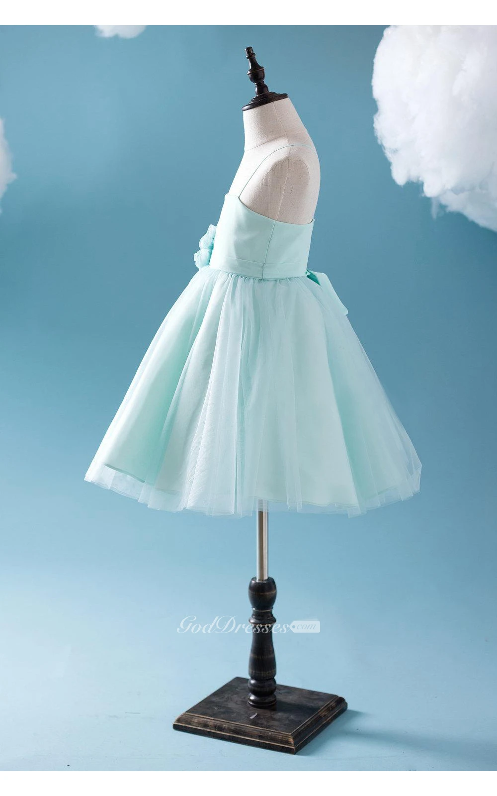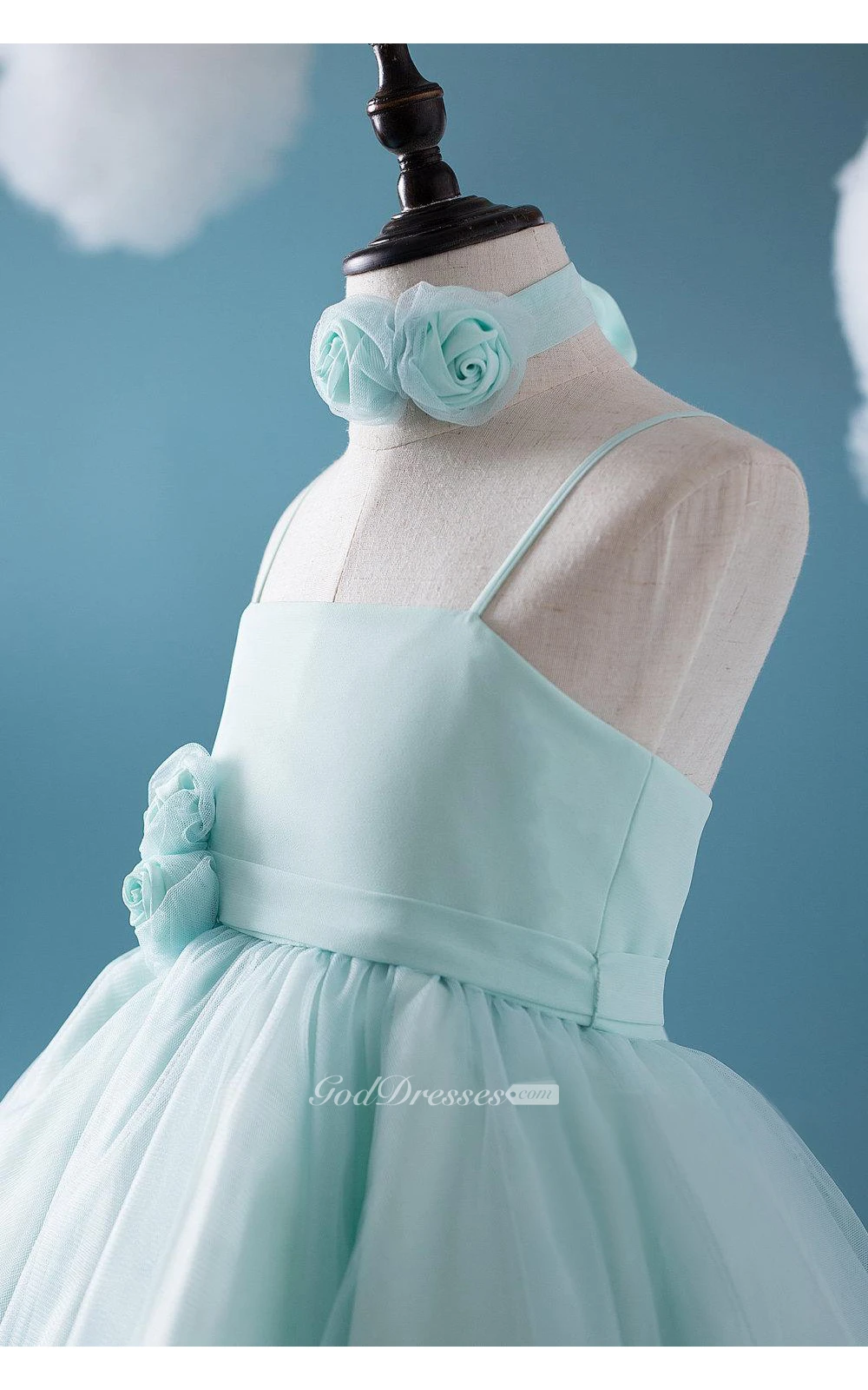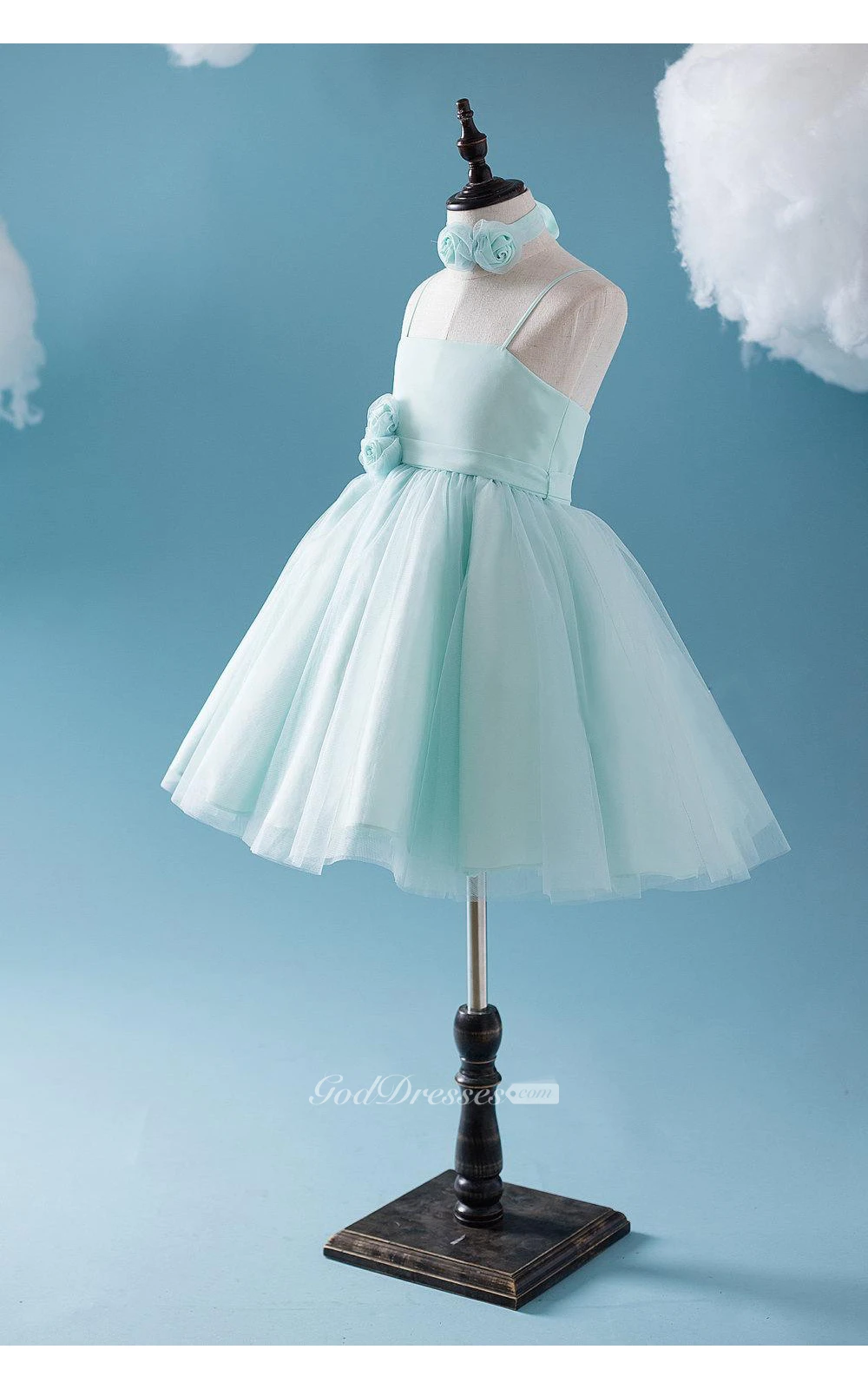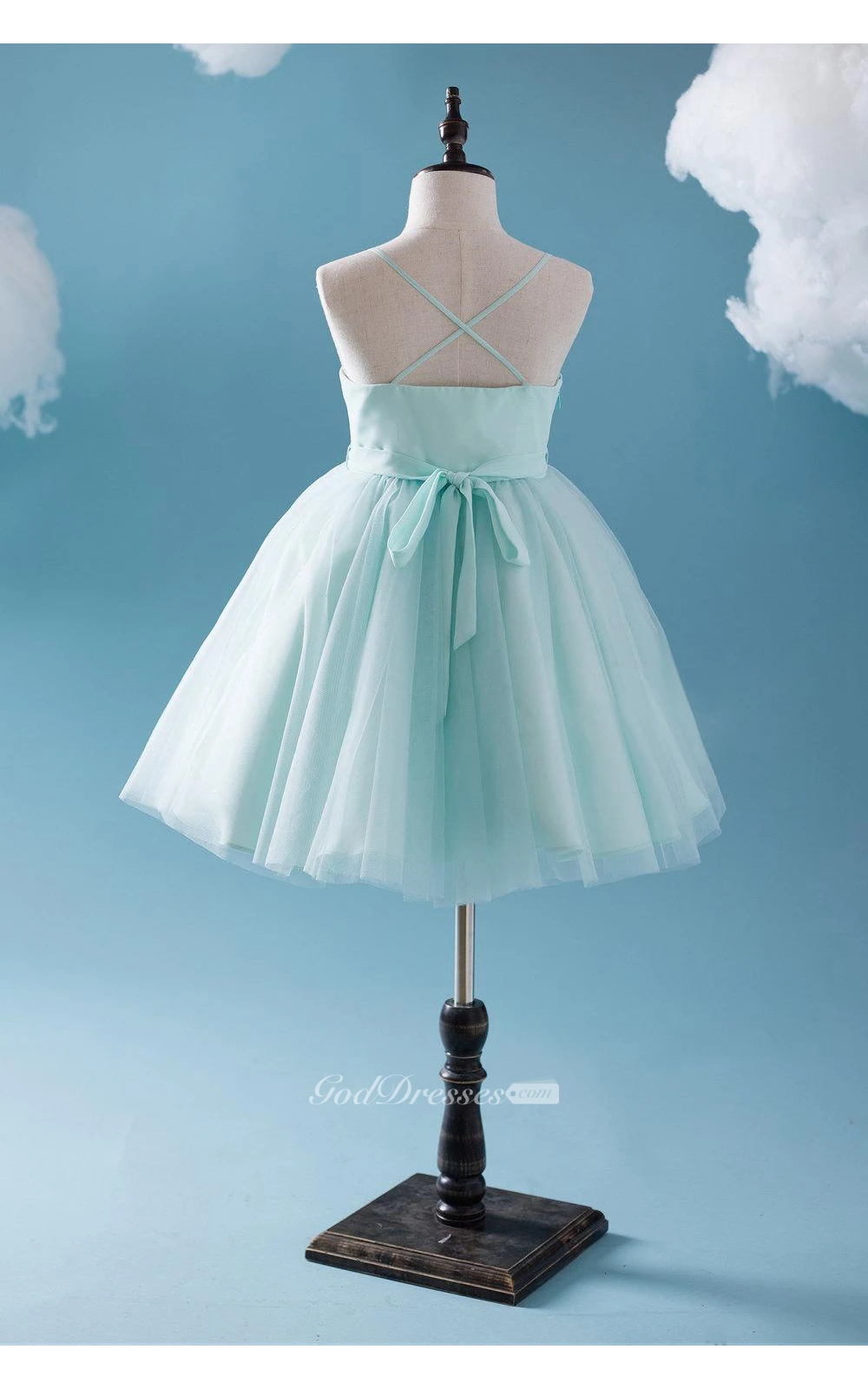 Criss-cross Spaghetti Straps A-line Tulle Short Dress With Flower Sash