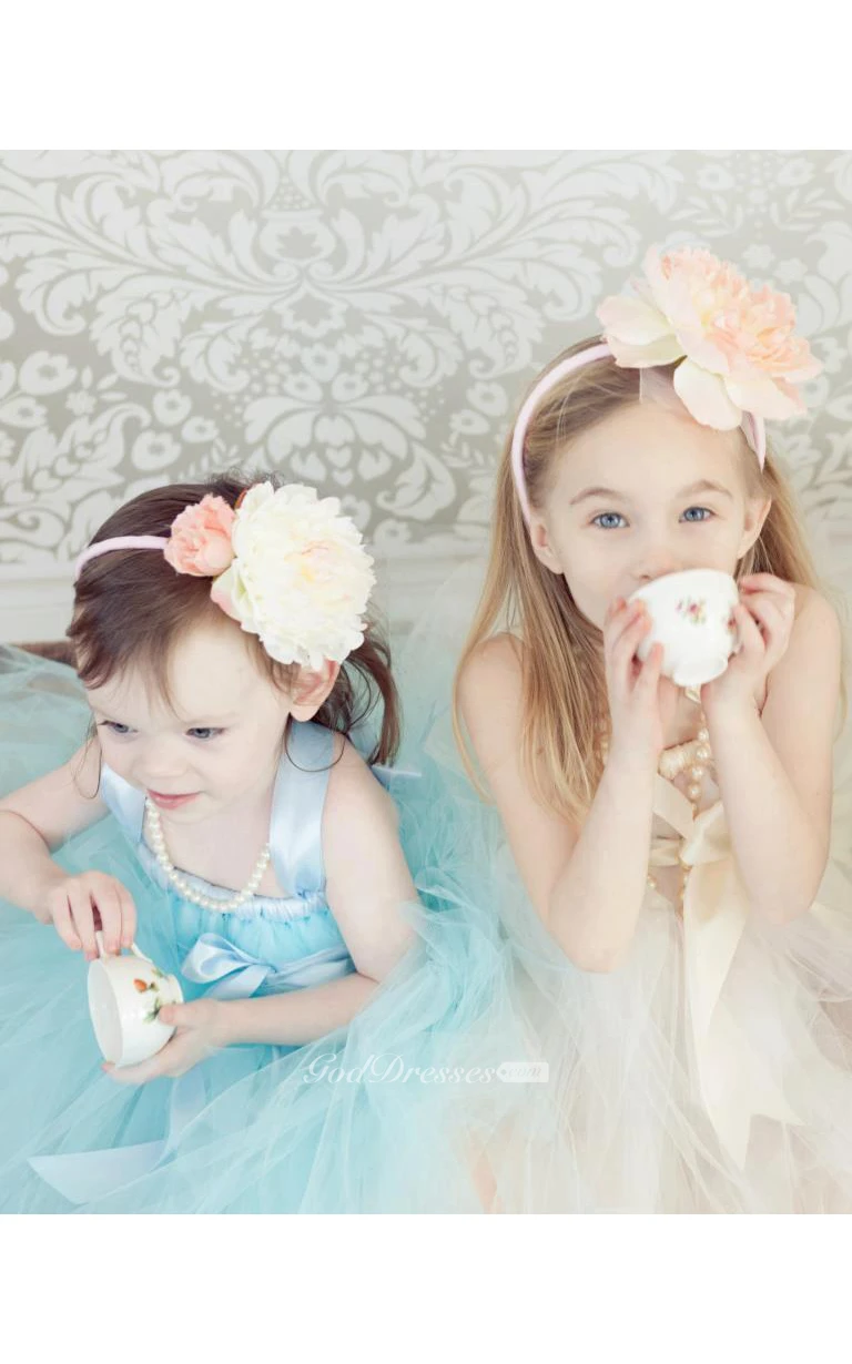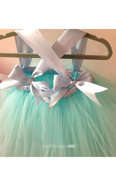 Criss-cross Straps Tiered Tulle Knee Length Dress With Bows
