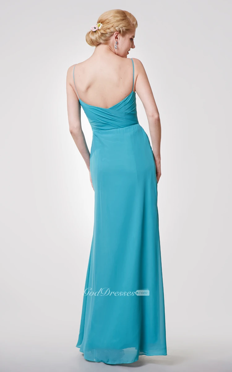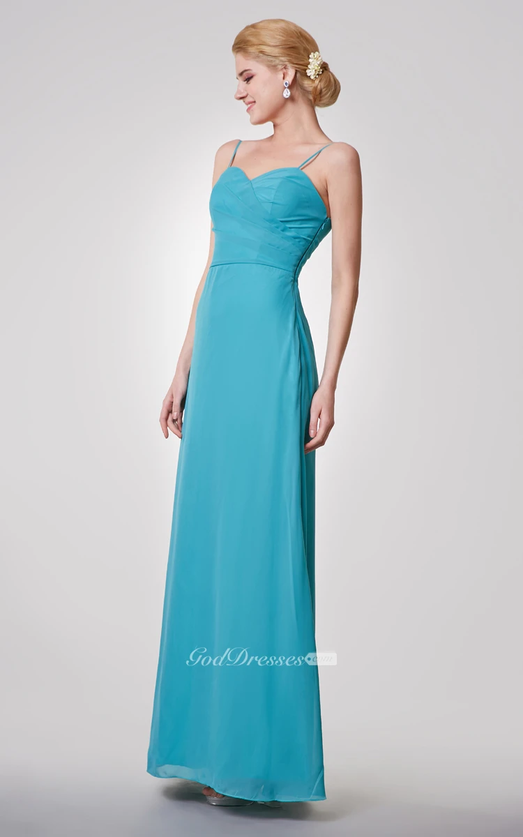 Crisscross Bodice Spaghetti Straps Sheath Chiffon Long Dress