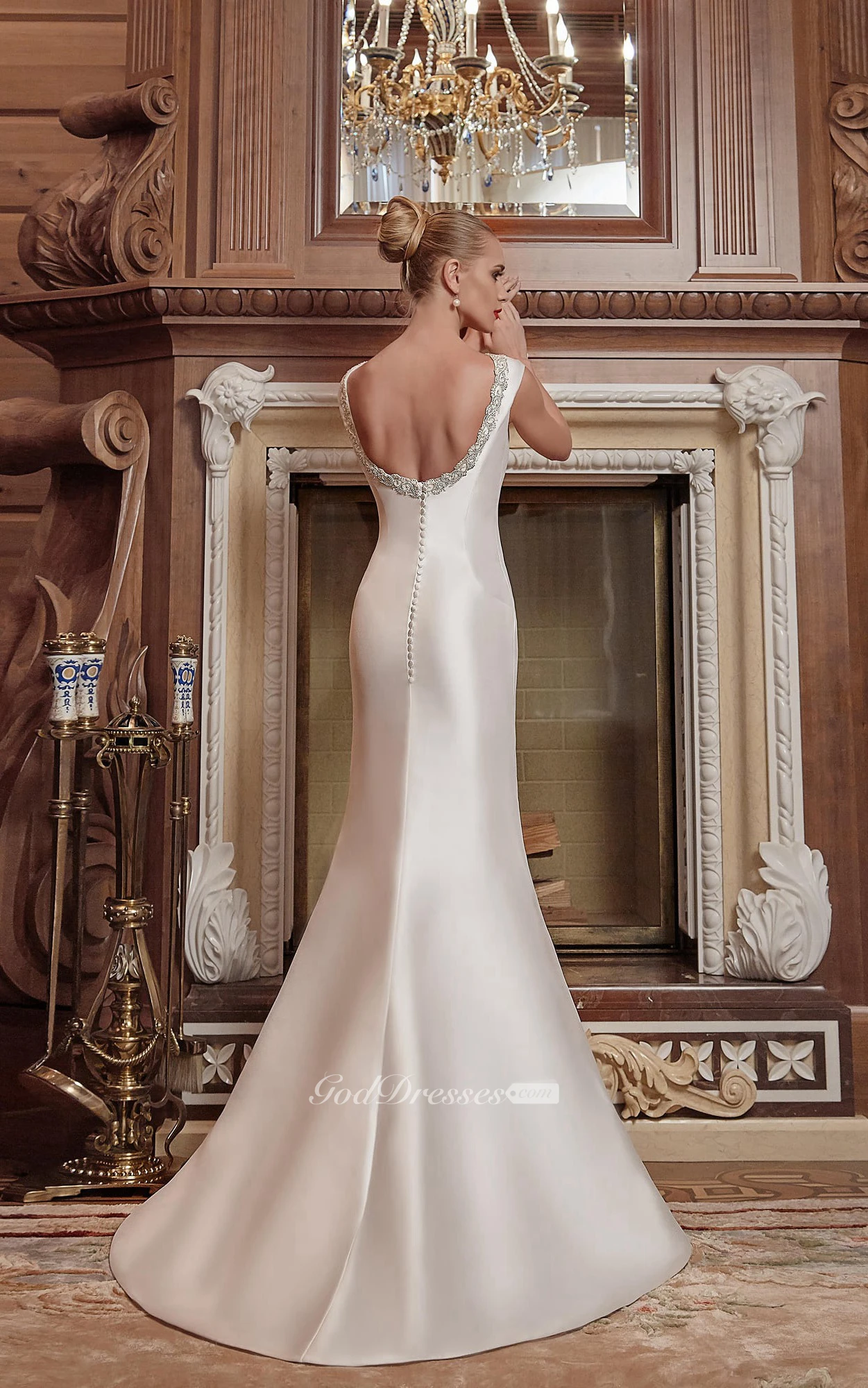 Crystal Detailing Bateau Neckline Bow Satin Backless Dress